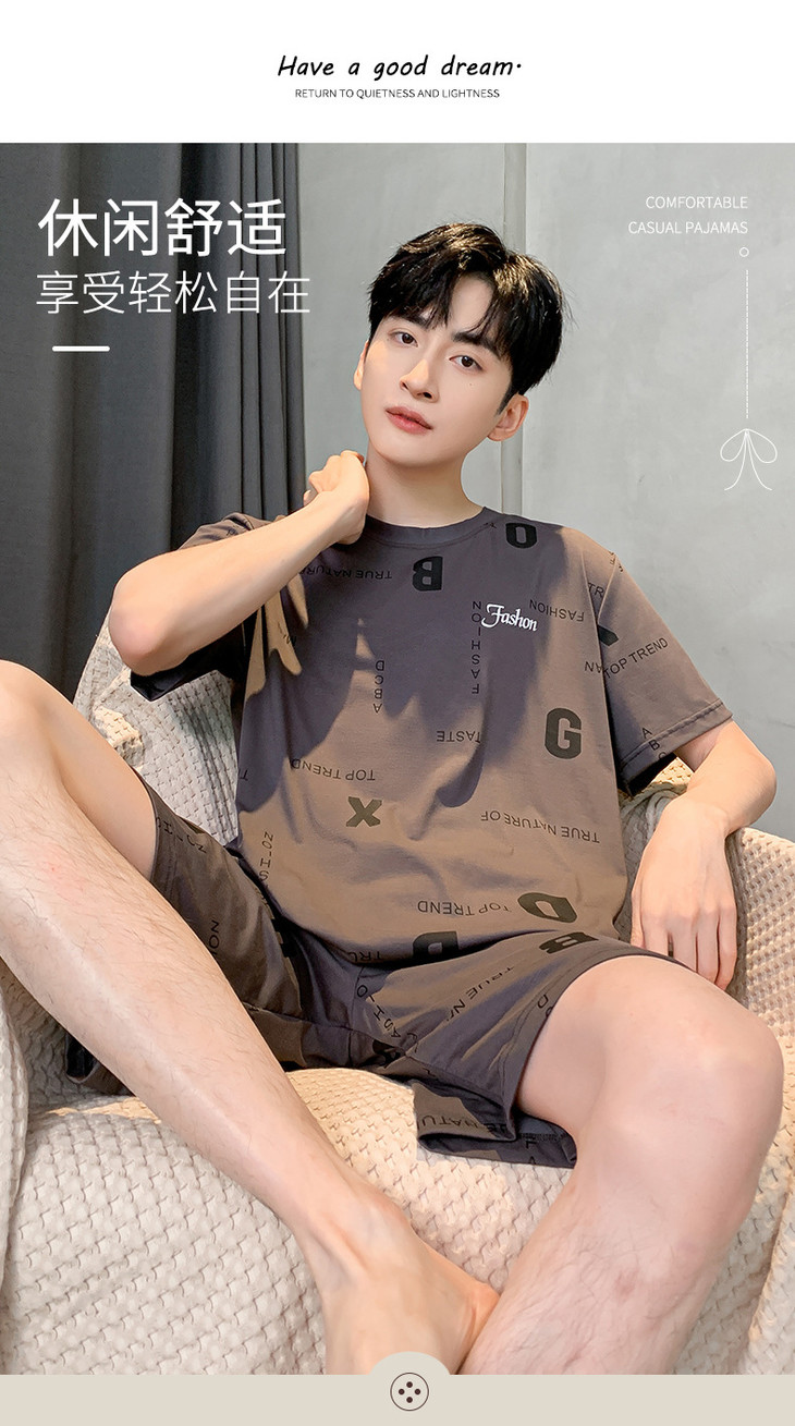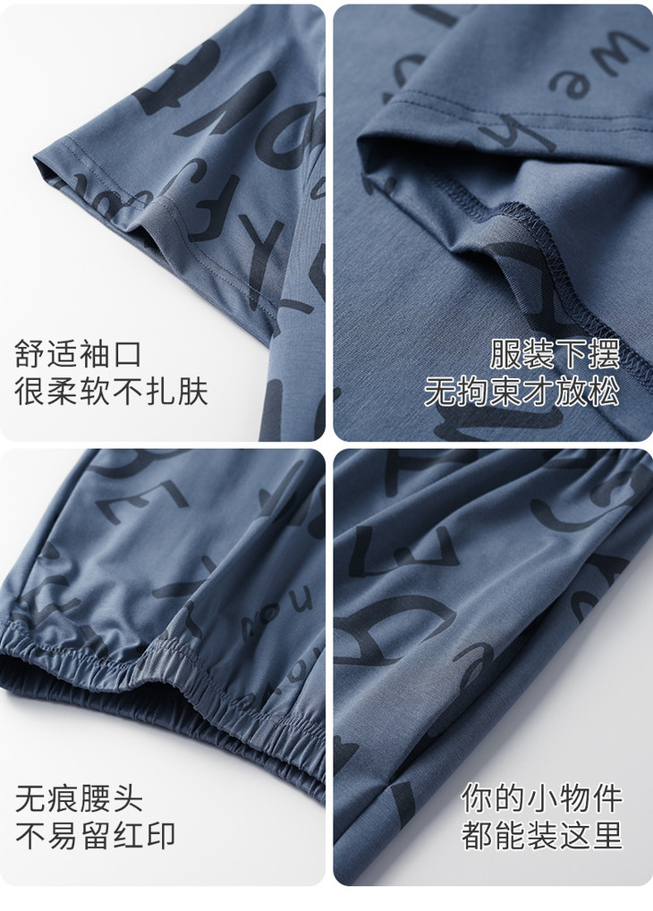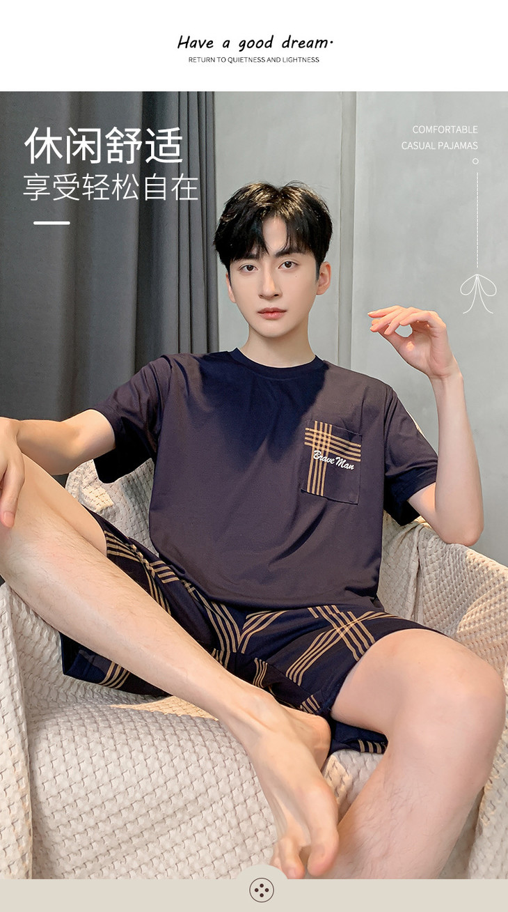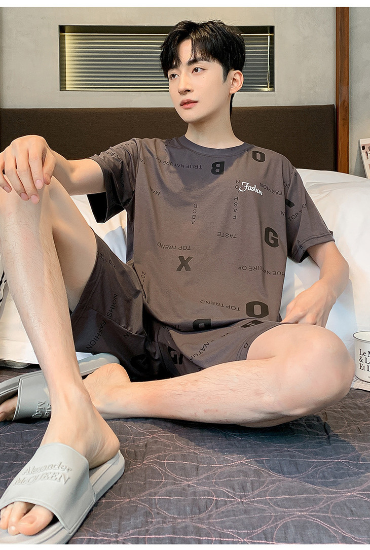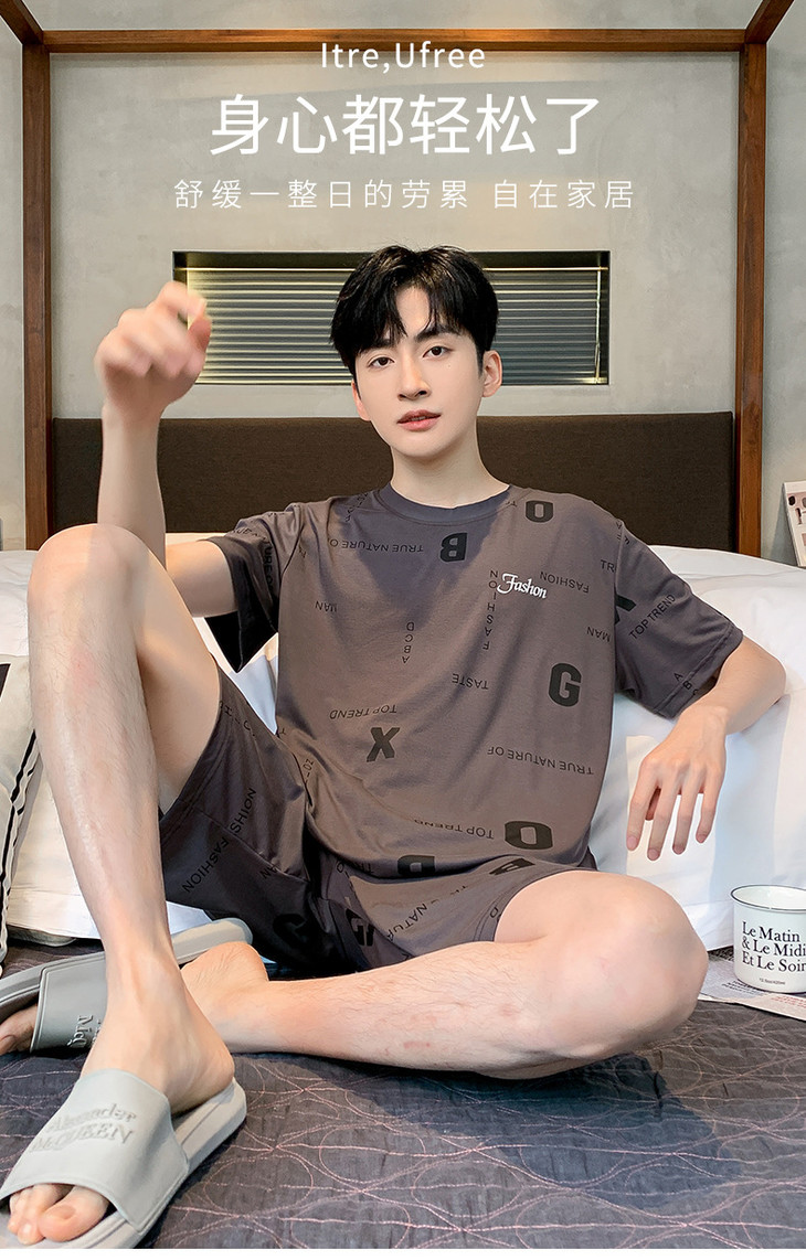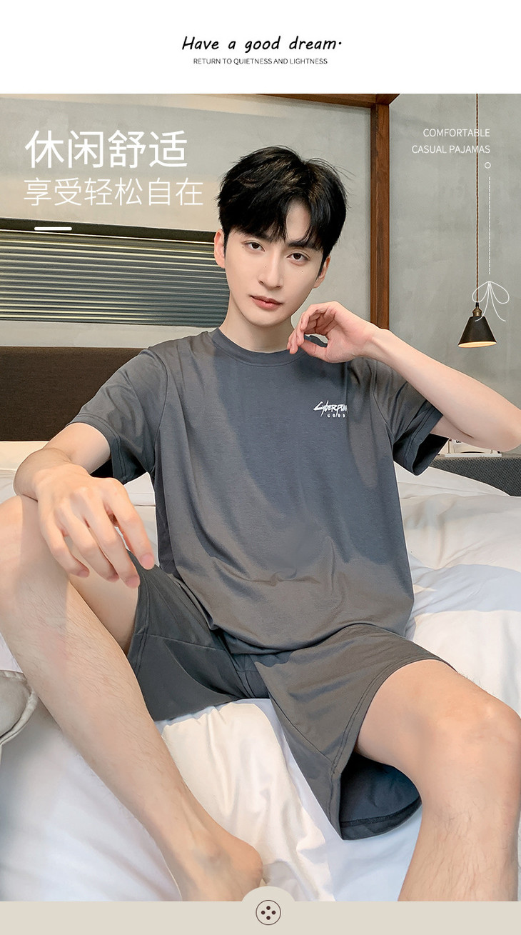 夏季莫代尔卡通睡衣男士圆领短袖短裤薄款休闲外穿男生家居服套装