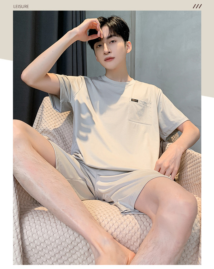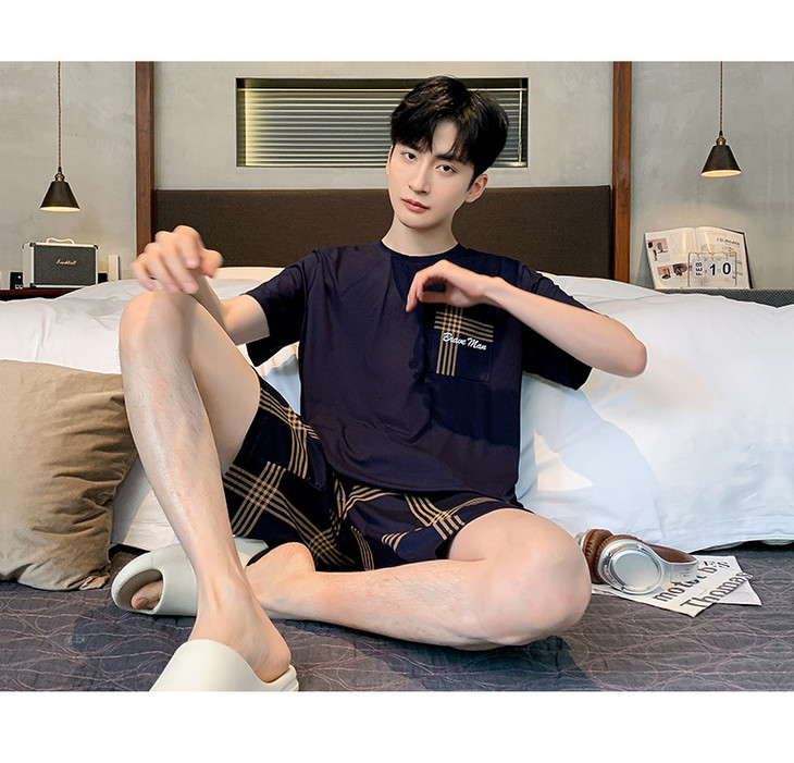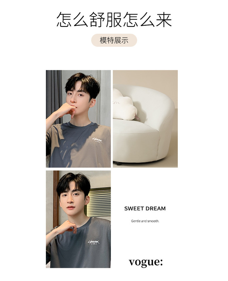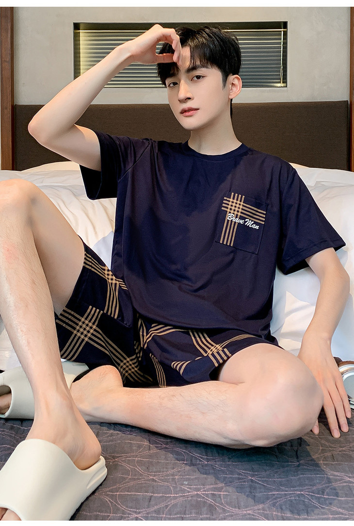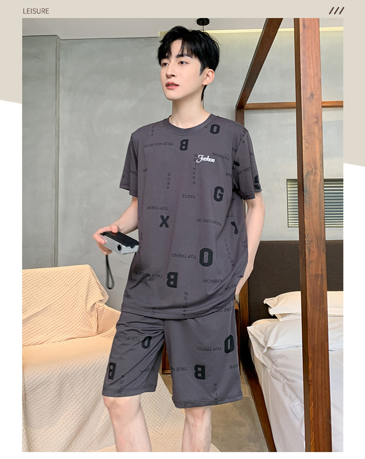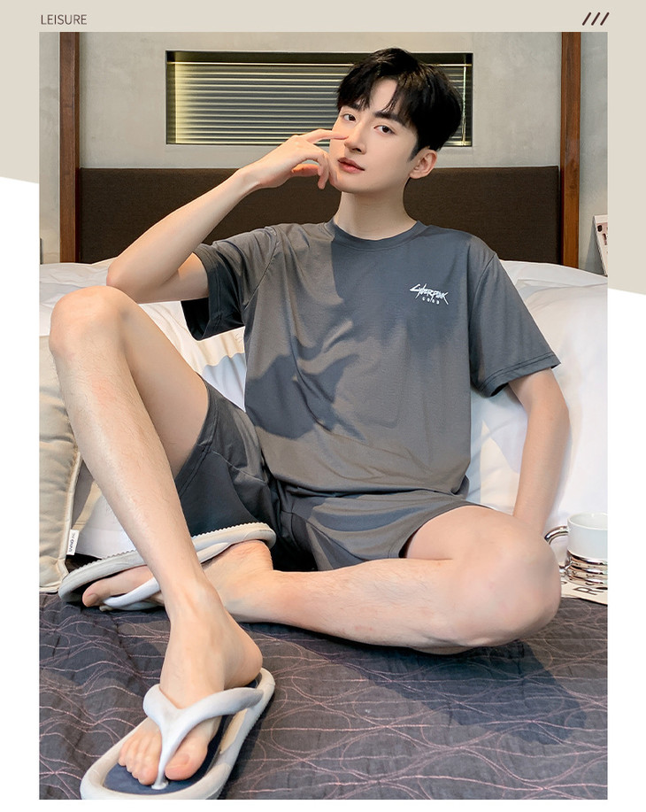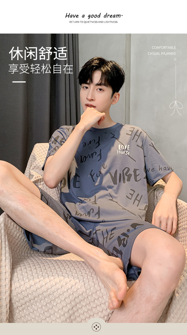夏季莫代尔卡通睡衣男士圆领短袖短裤薄款休闲外穿男生家居服套装