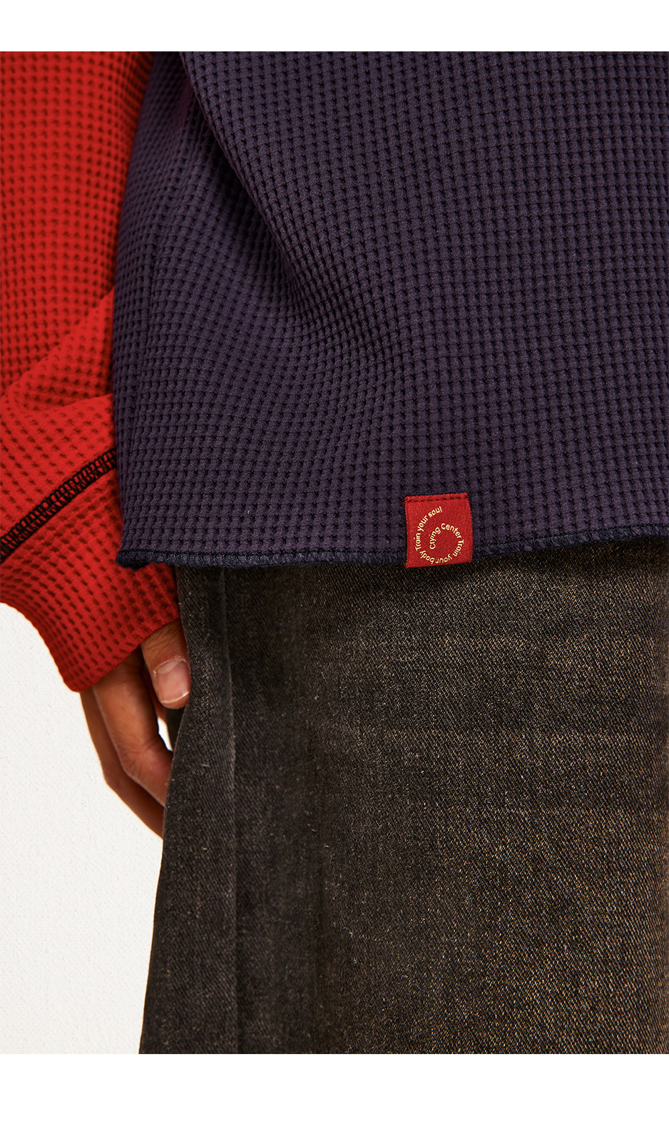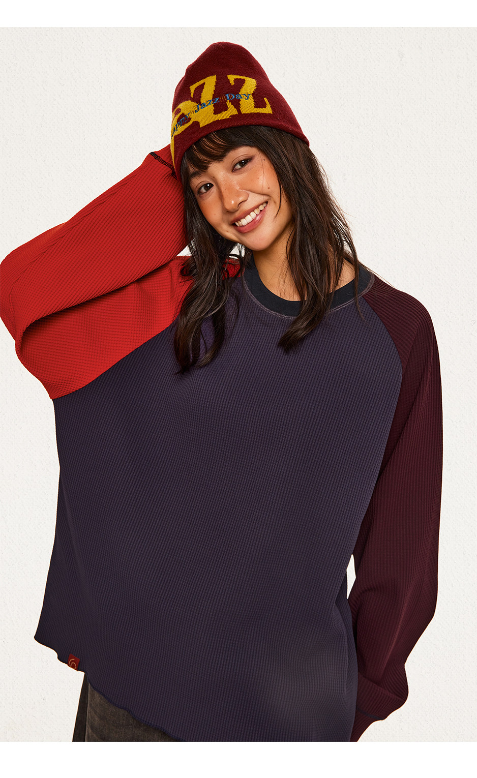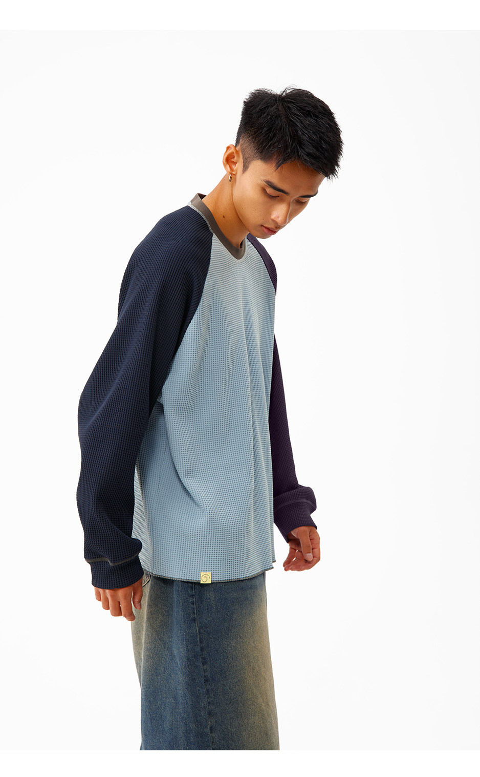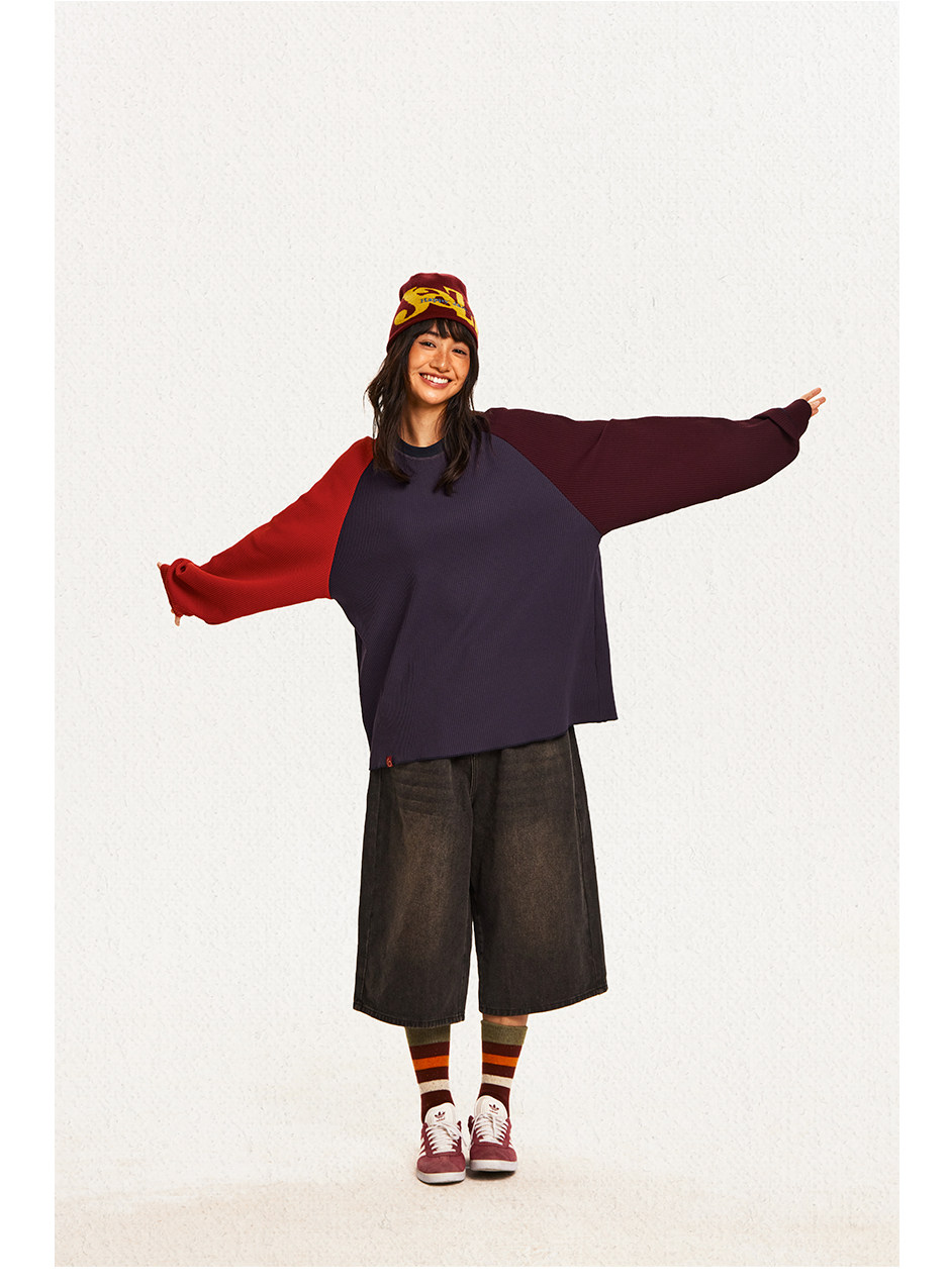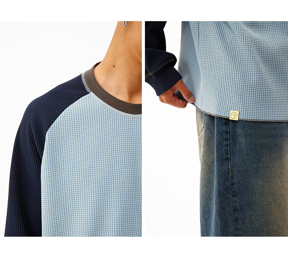 CryingCenter 撞色华夫格插肩打底衫 哭喊中心