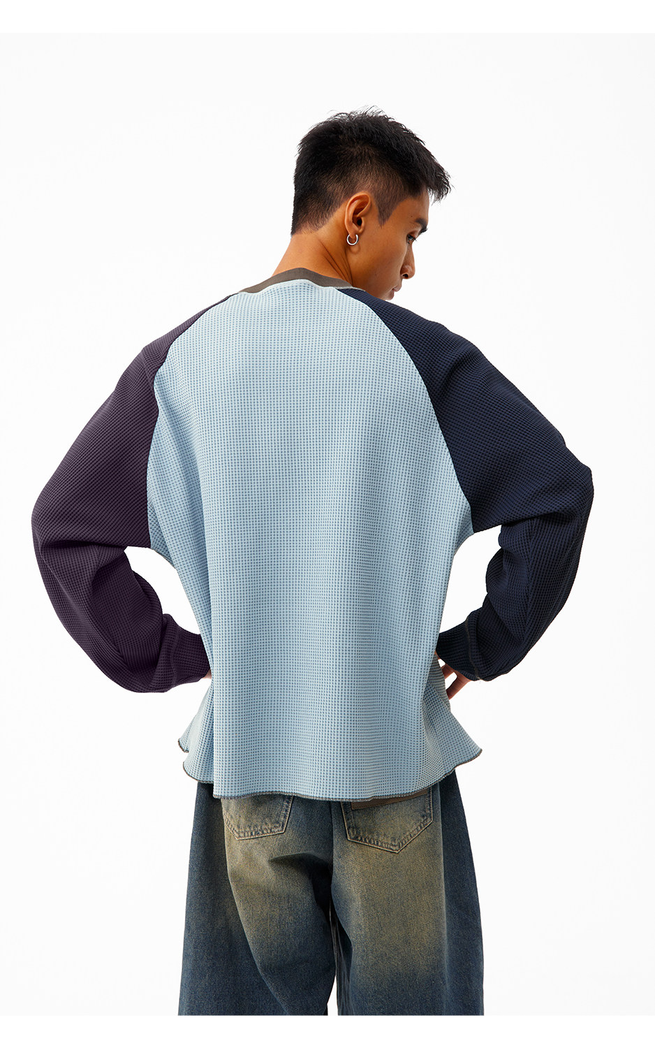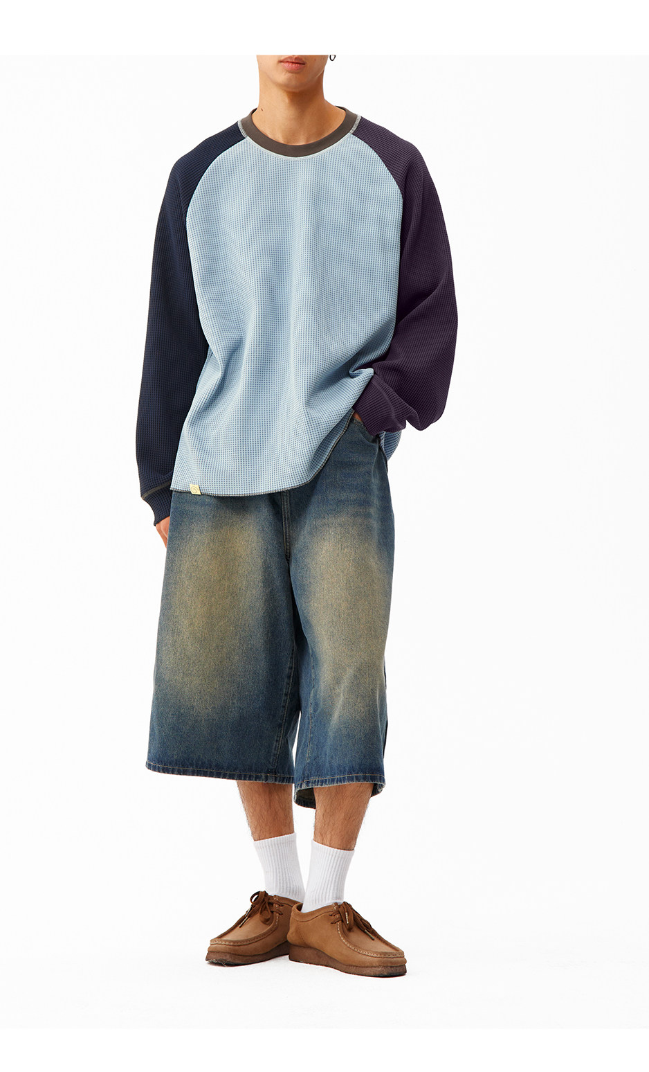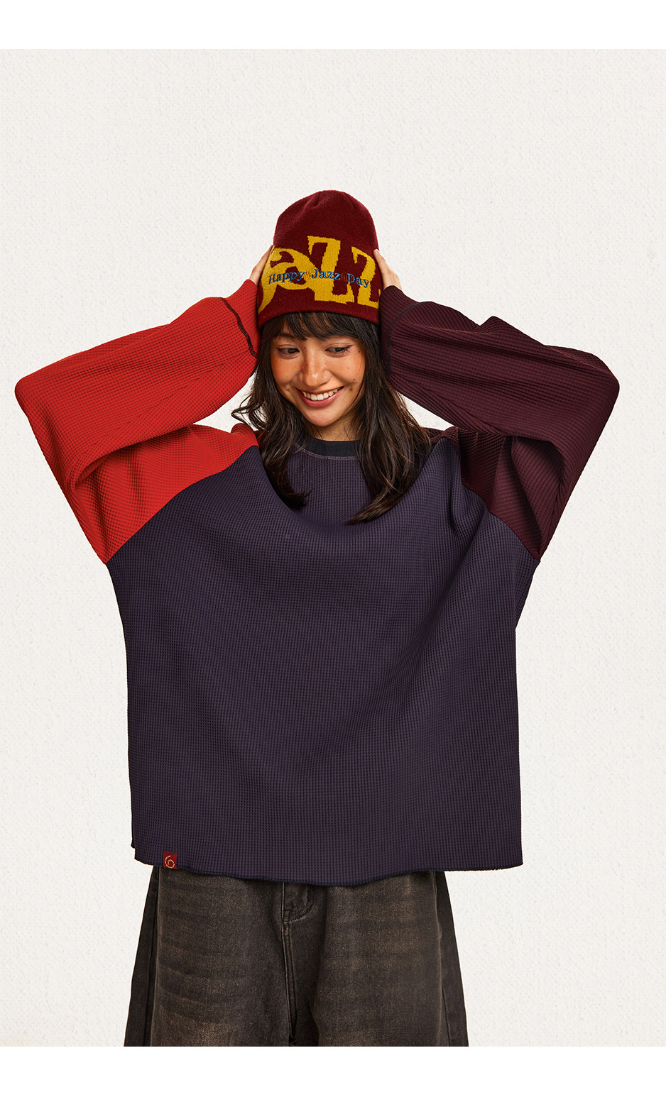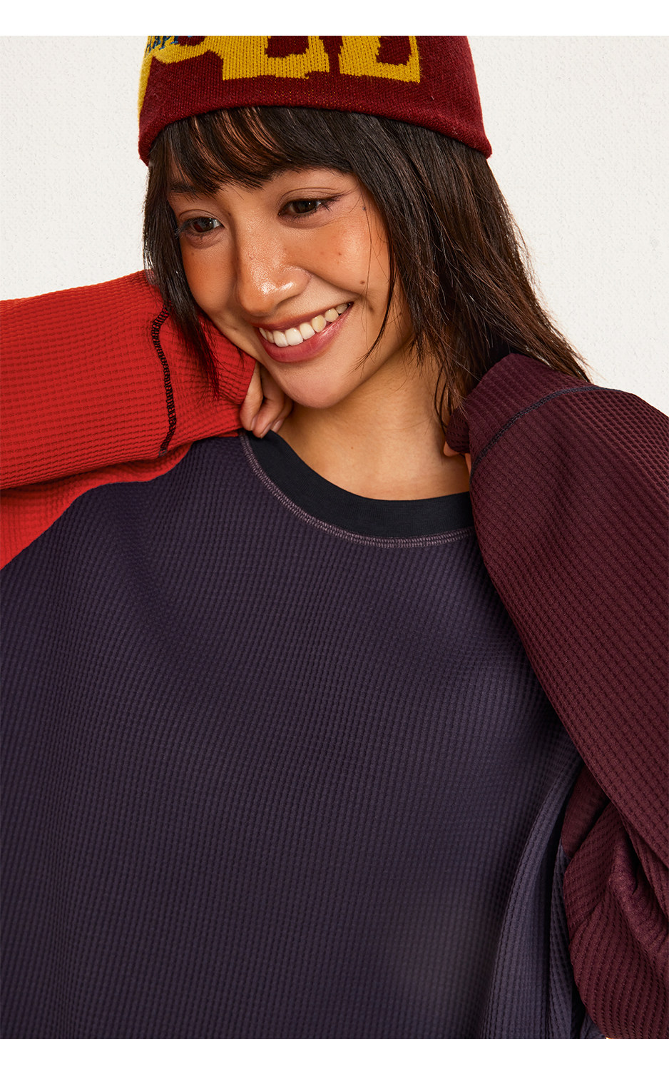 CryingCenter 撞色华夫格插肩打底衫 哭喊中心