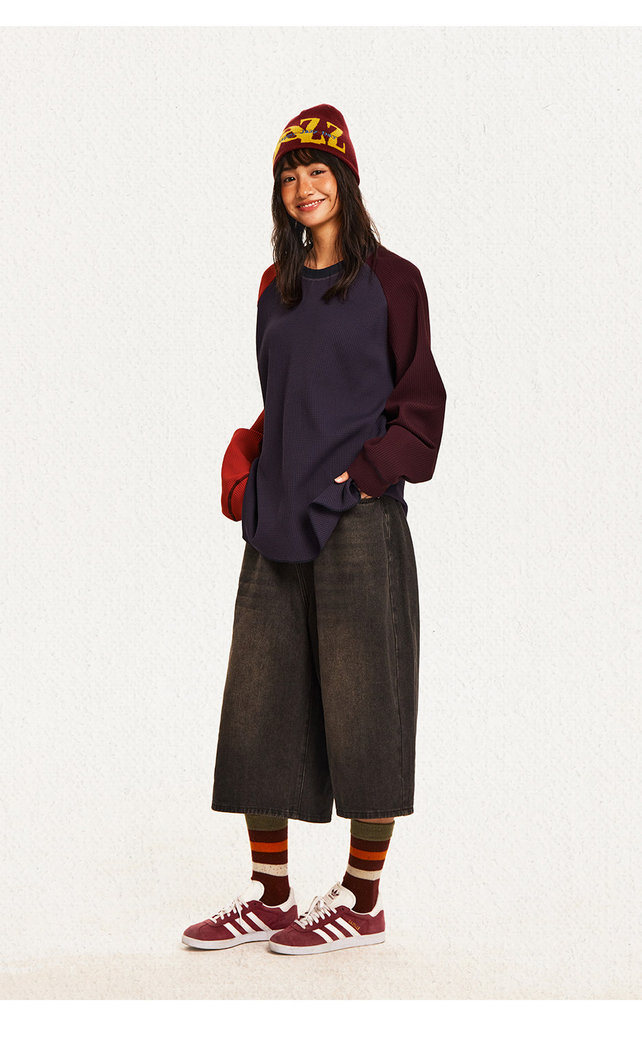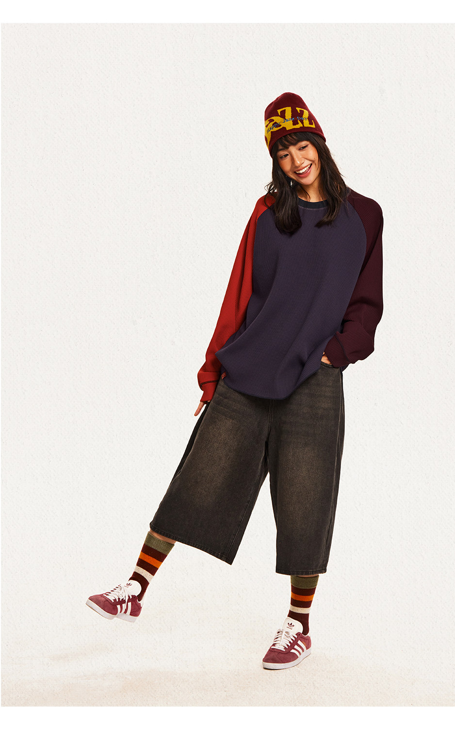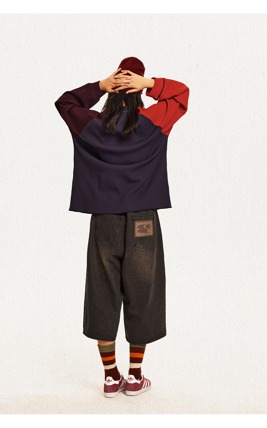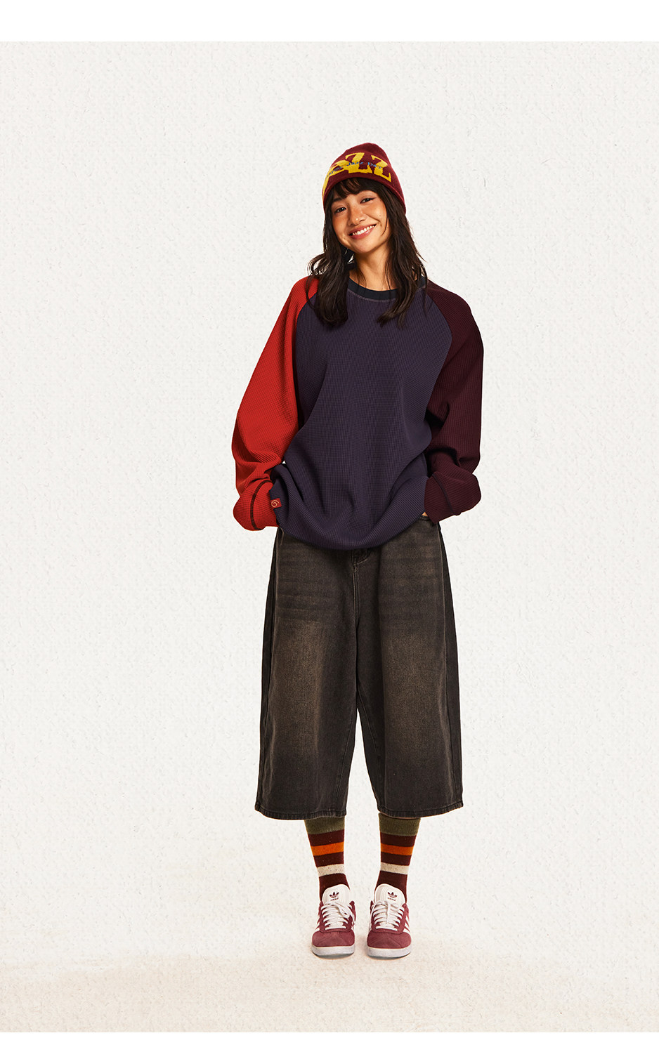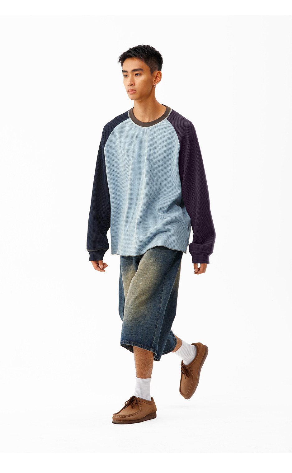 CryingCenter 撞色华夫格插肩打底衫 哭喊中心