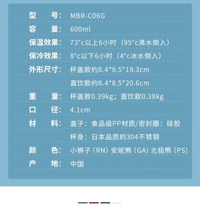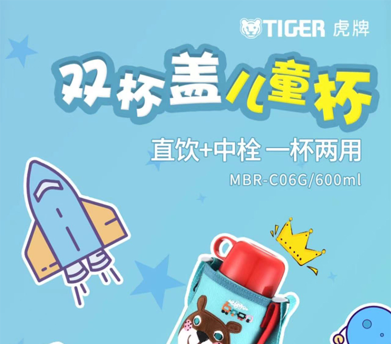 【保税仓】TIGER/虎牌儿童保温狮子、杯湖蓝色 小棕熊、白色小白棕0.6L/个