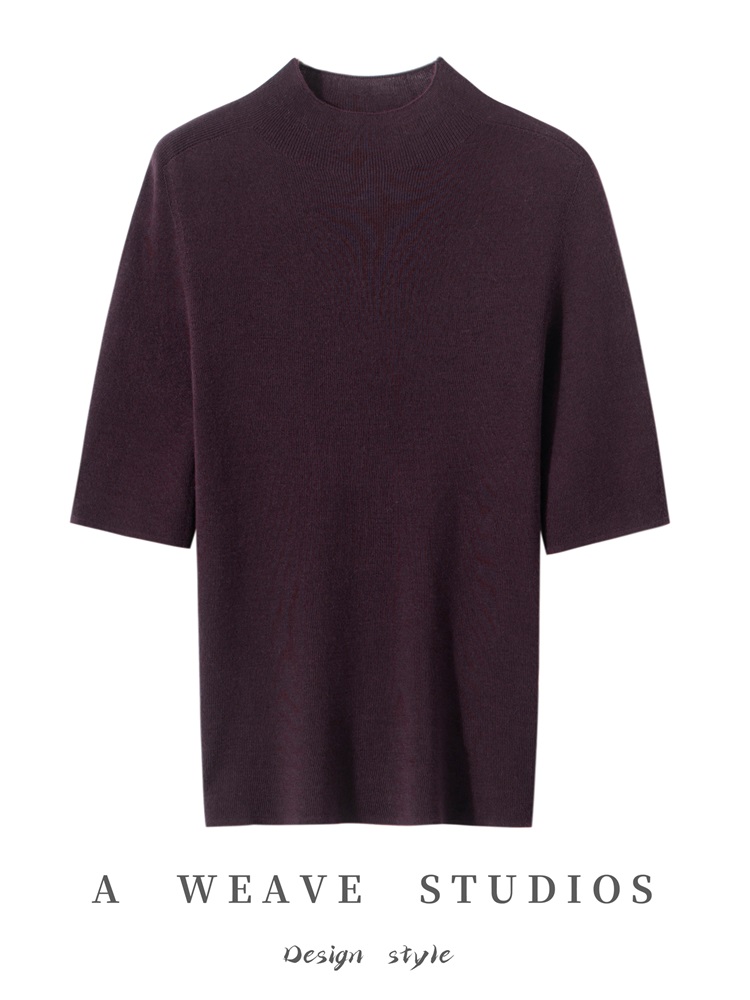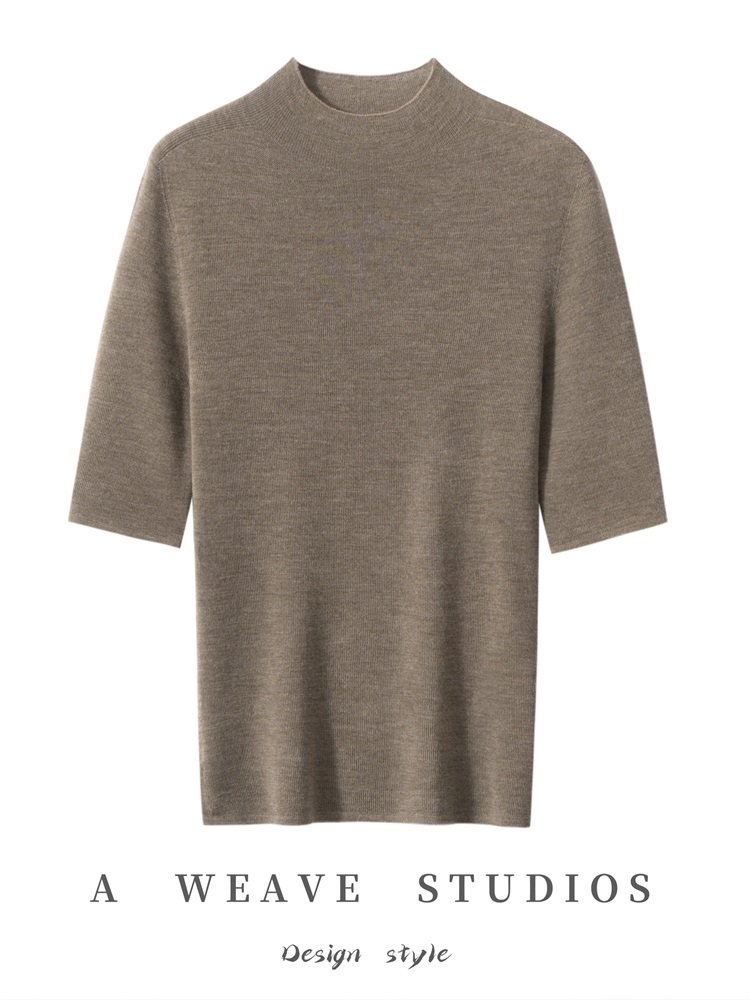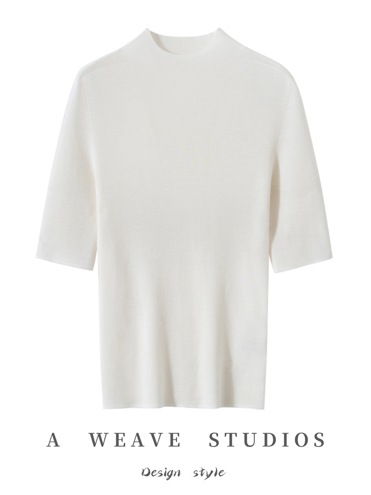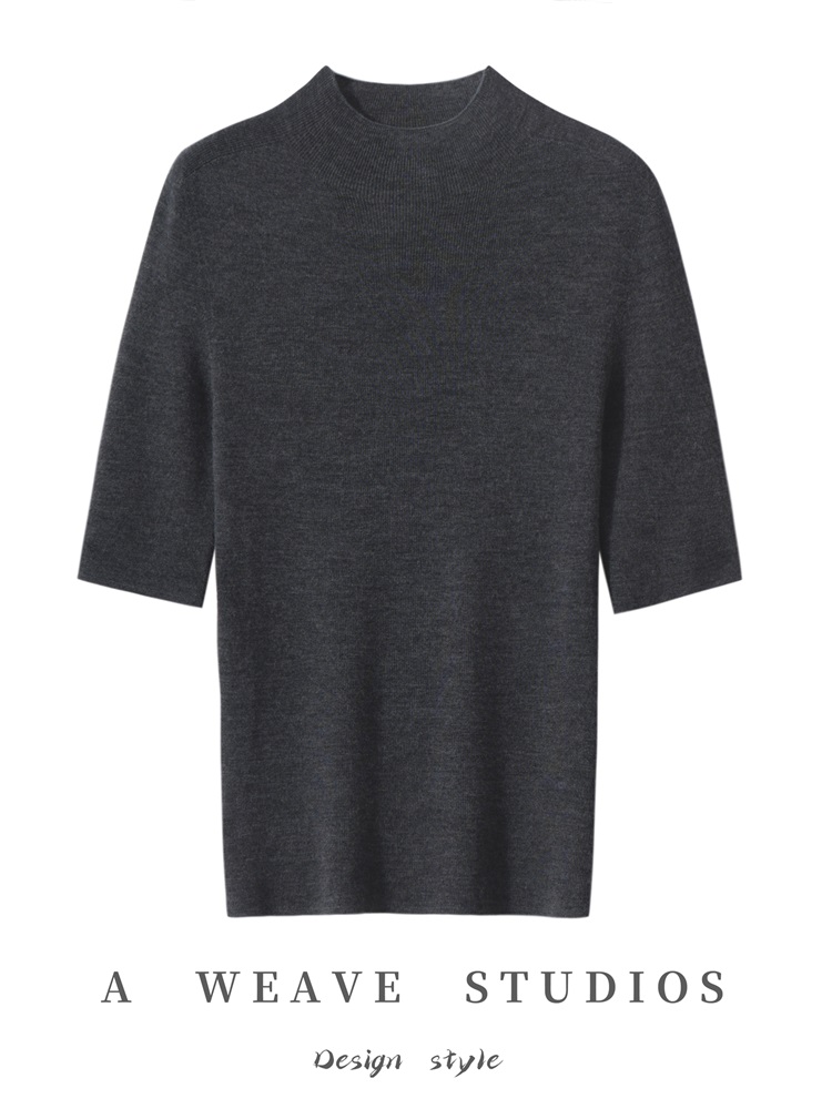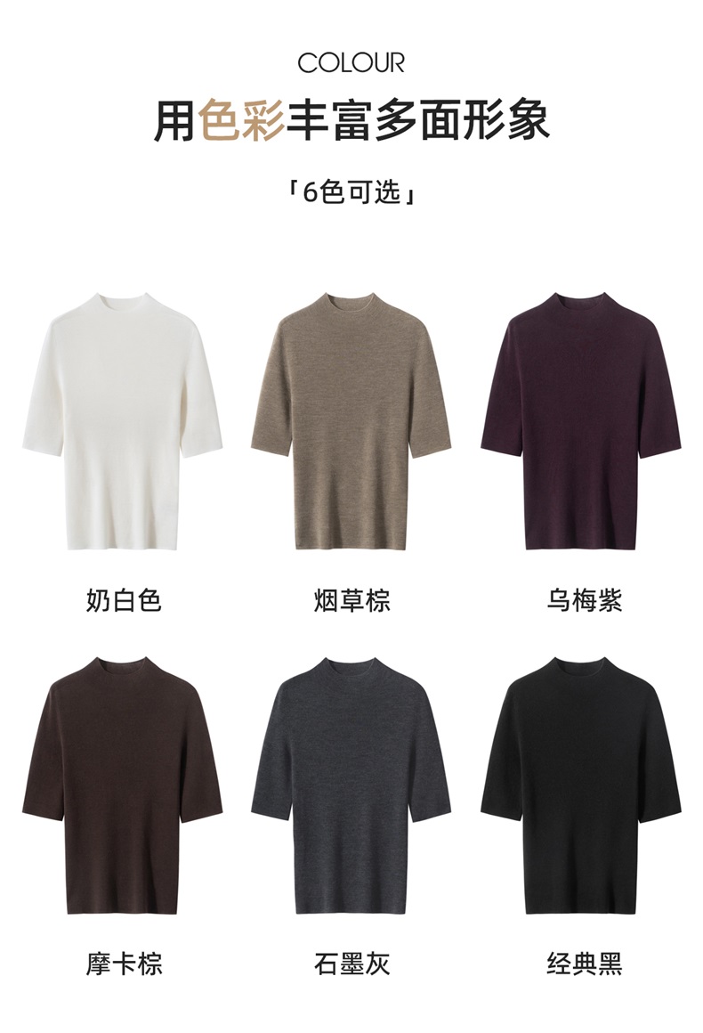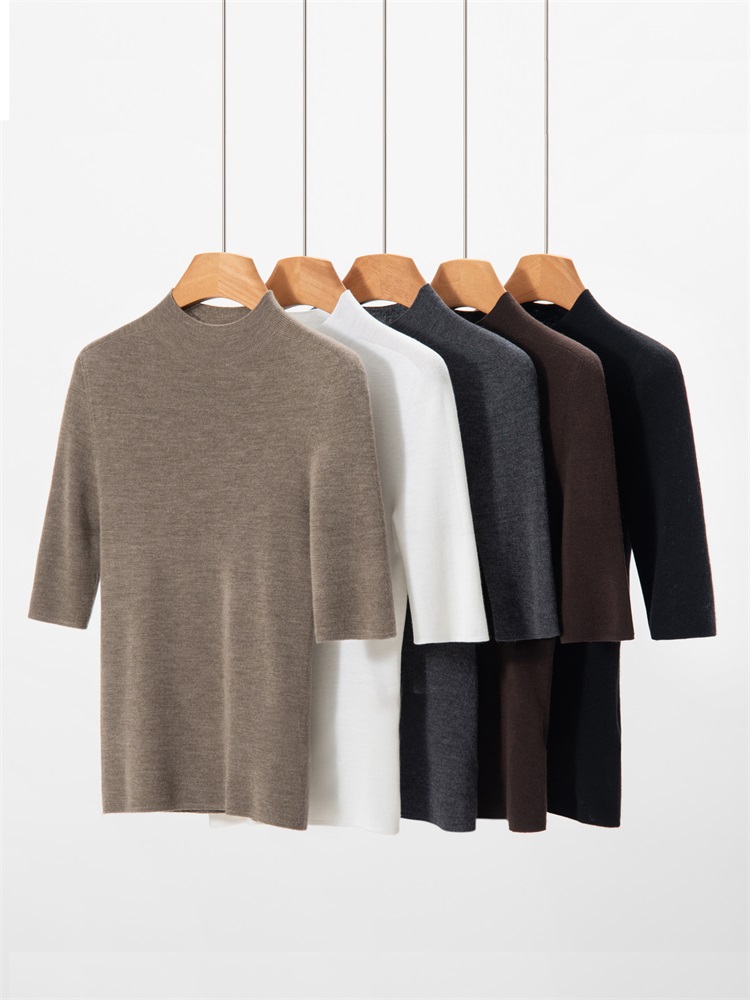 简而不约~100%精纺羊毛120支精纺扬子纱半高领五分袖短袖