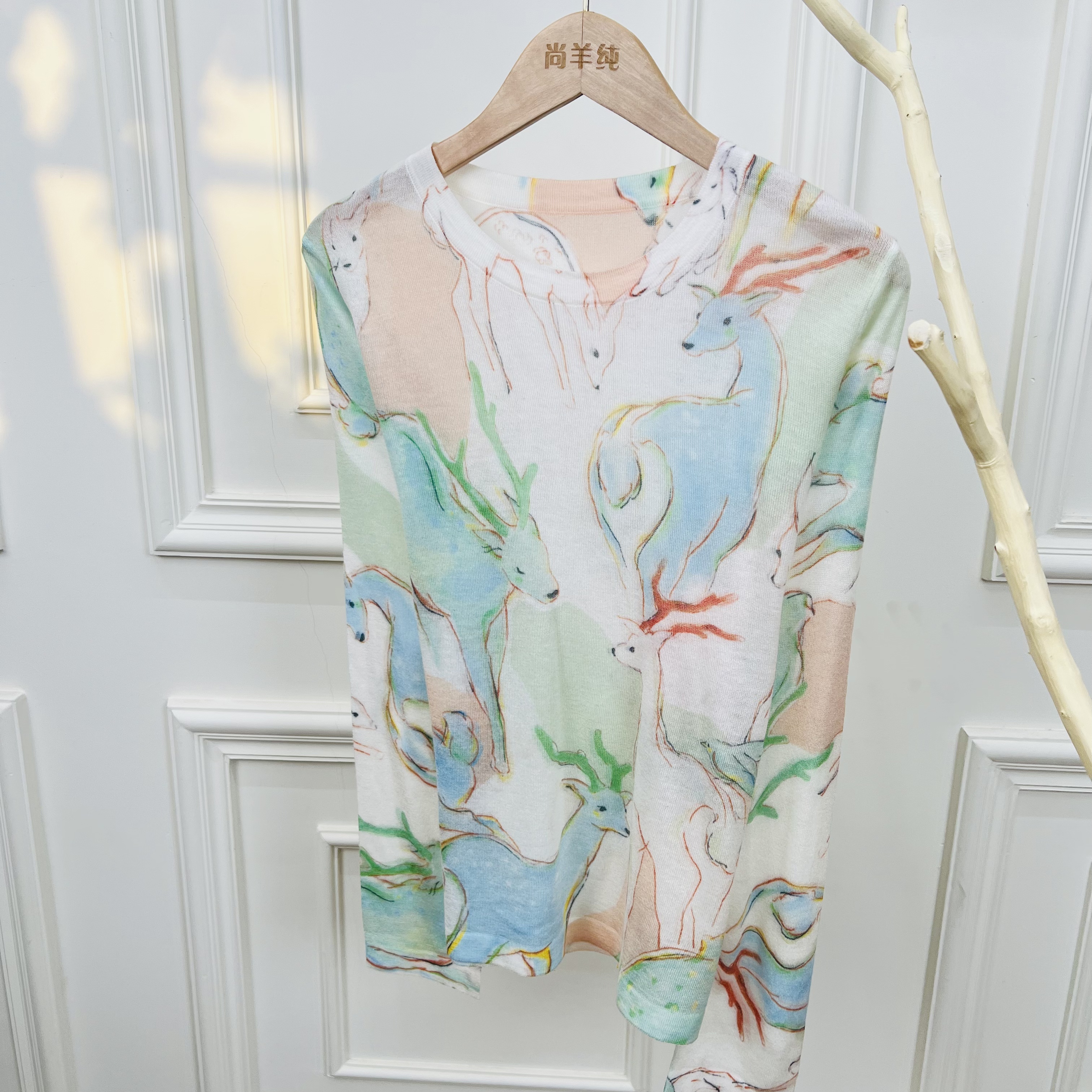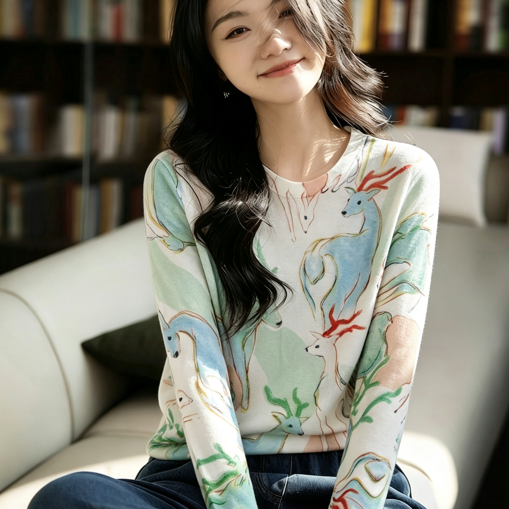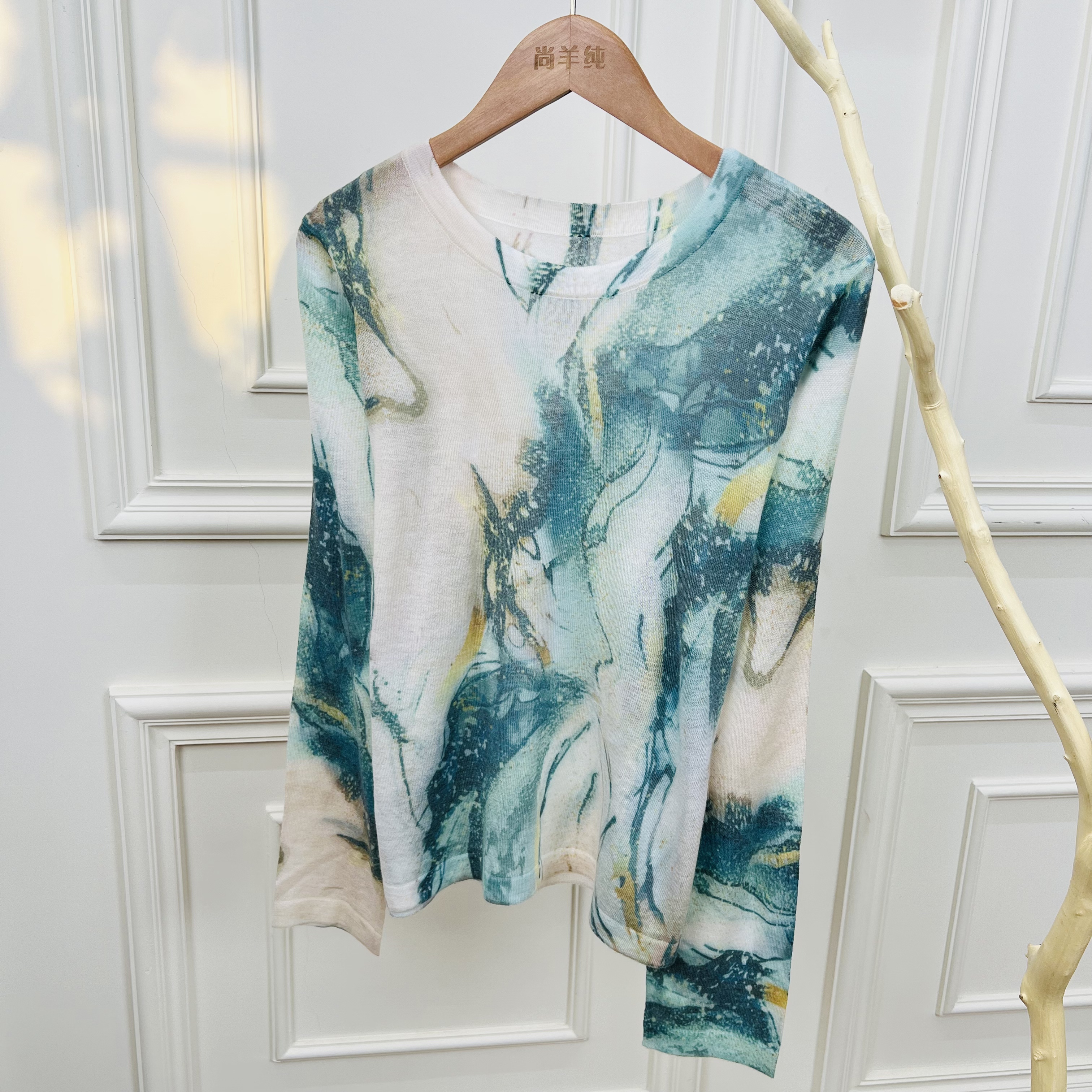 山水水墨~水溶羊毛圆领针织宽松显瘦长袖