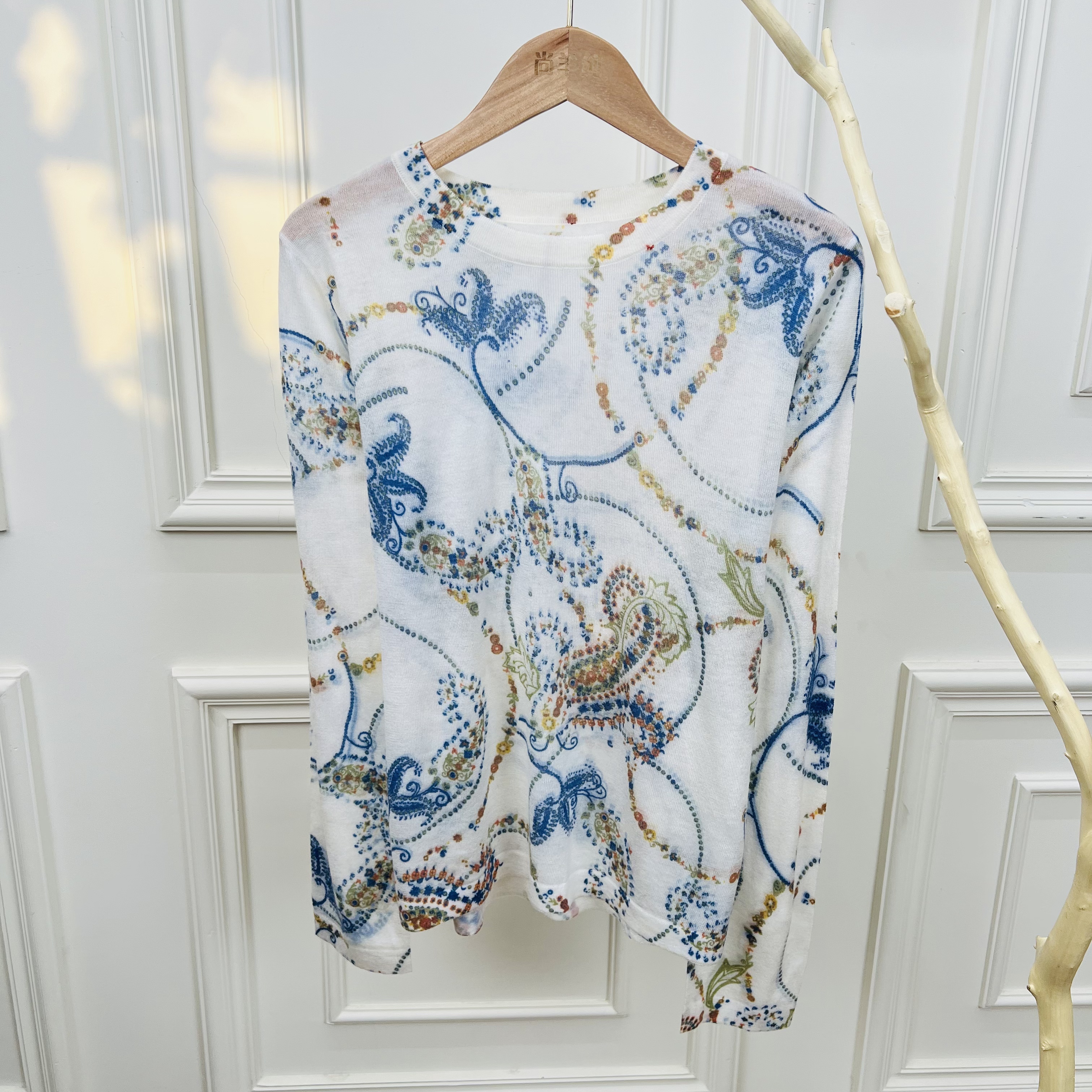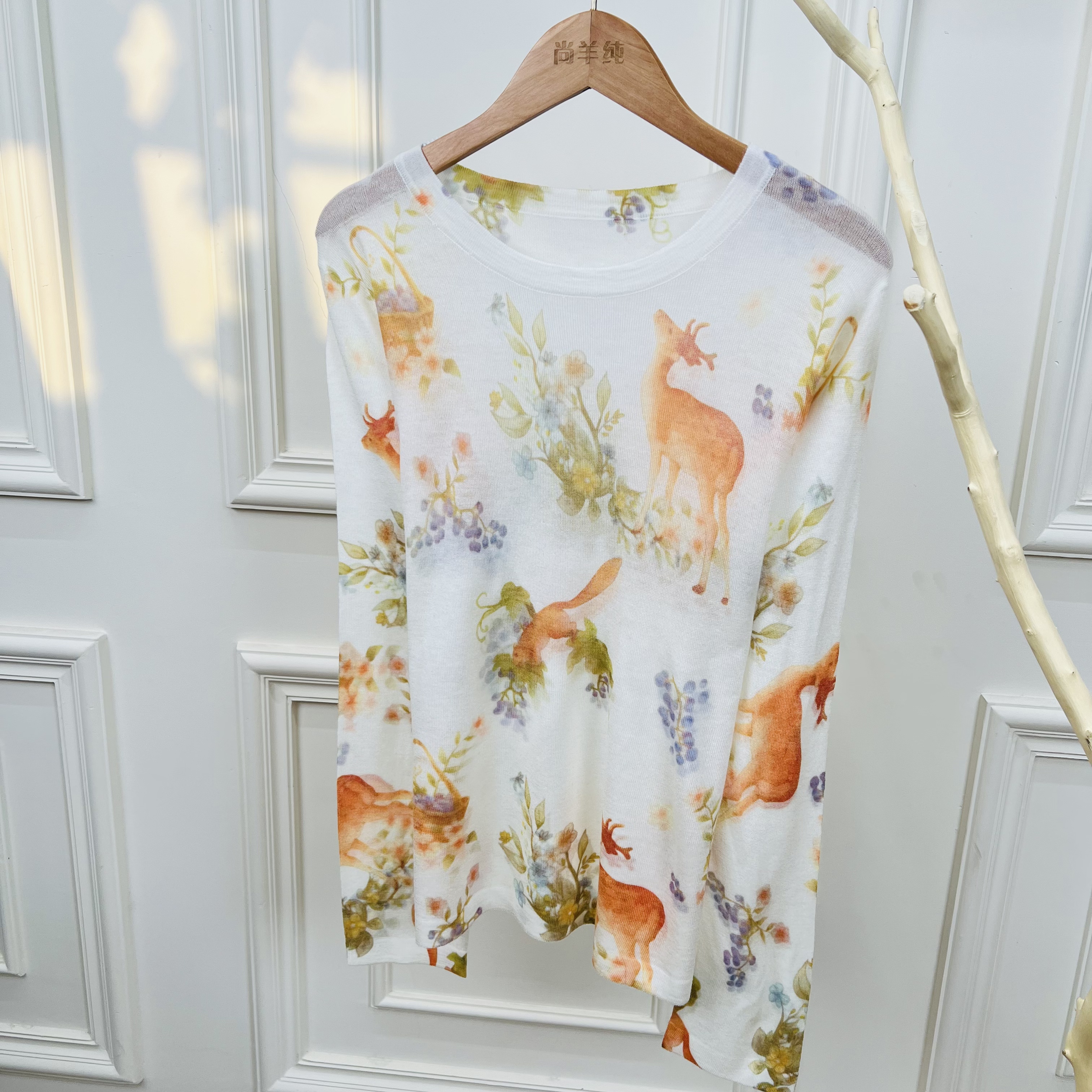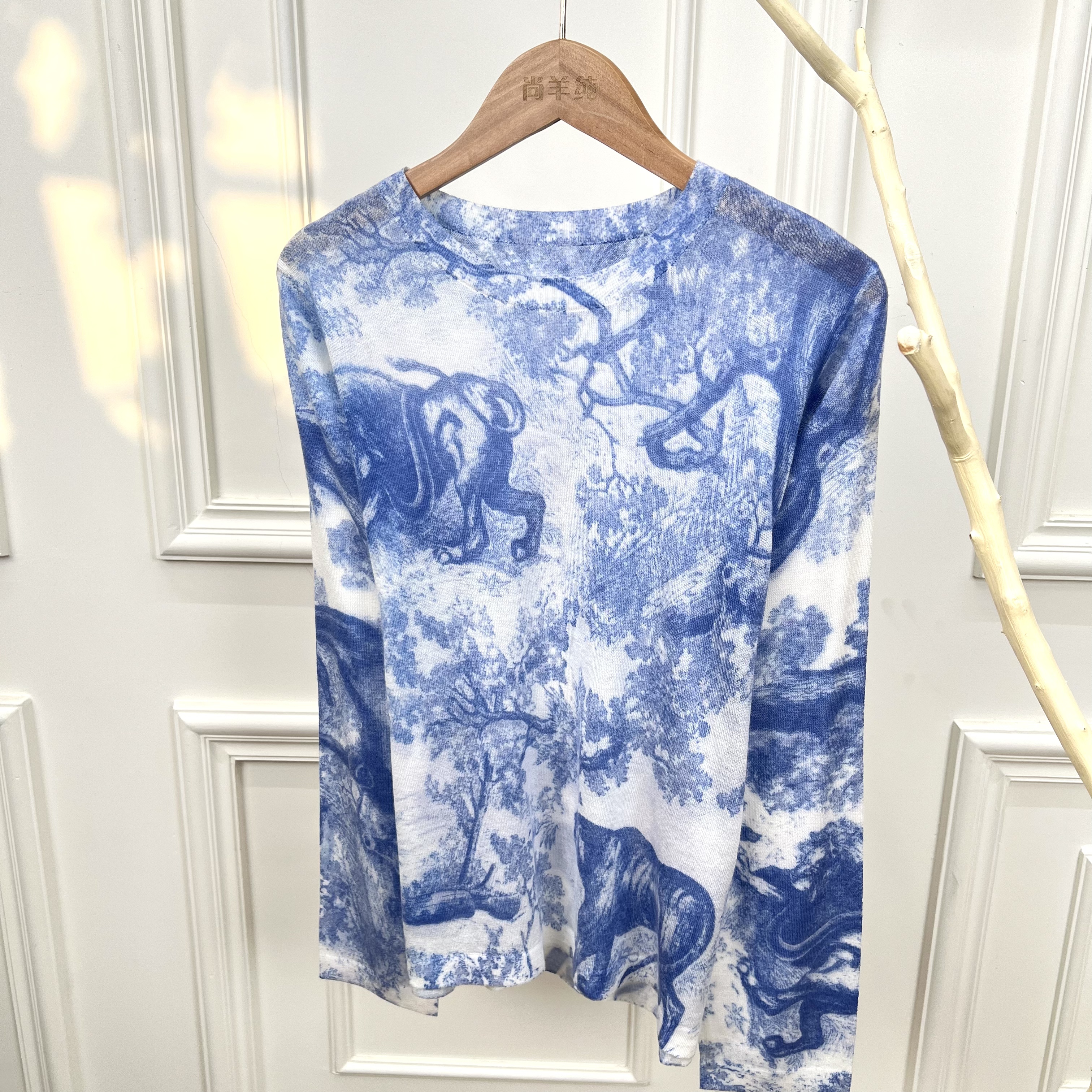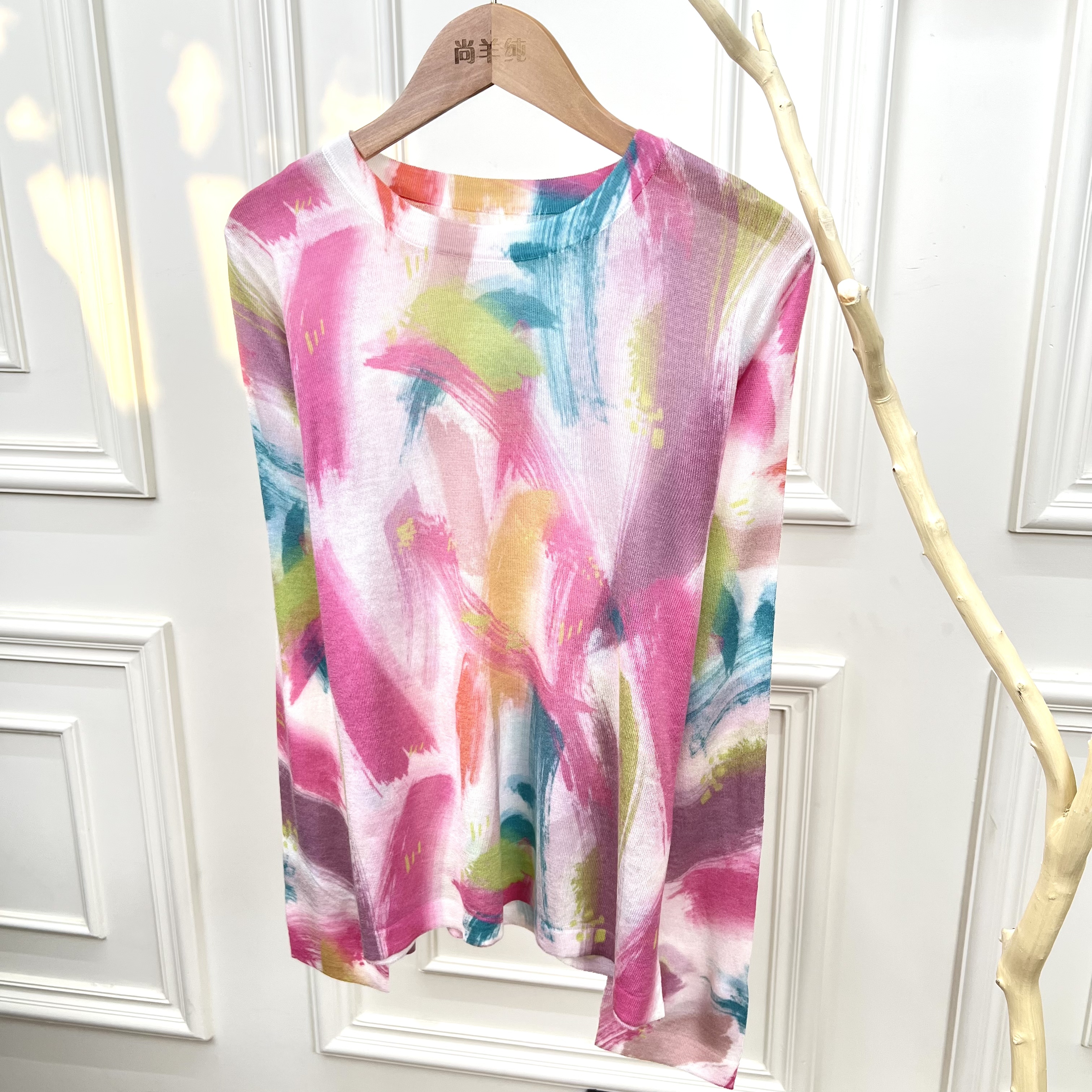 山水水墨~水溶羊毛圆领针织宽松显瘦长袖