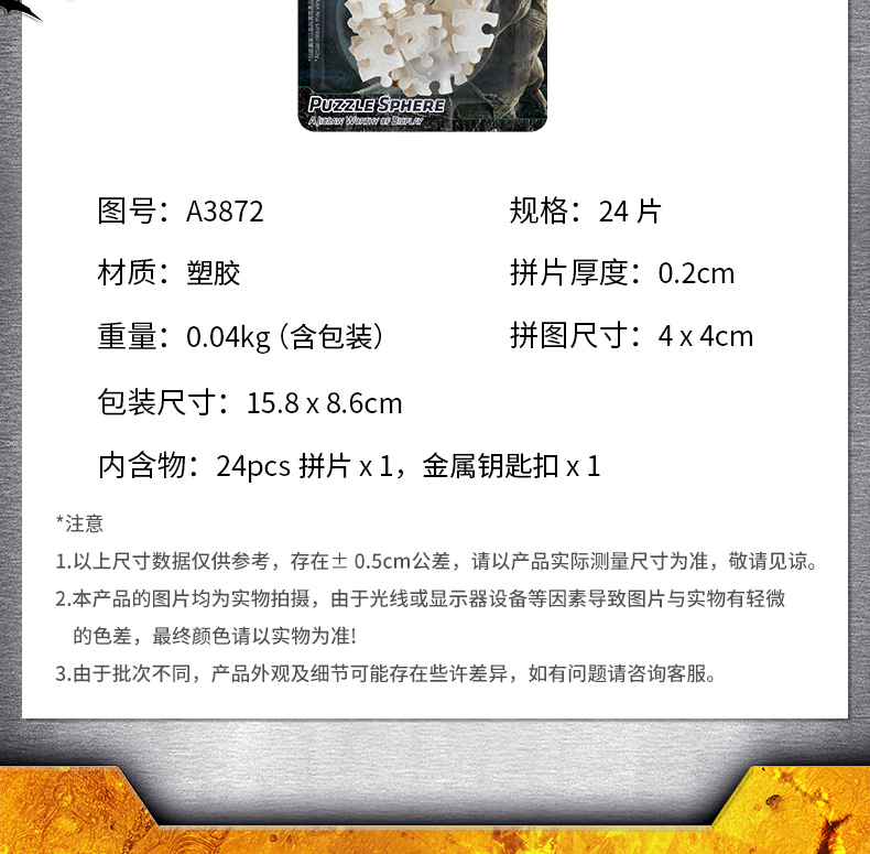 【折扣商品 不退不换】24片 钥匙扣拼图 A3872 侏罗纪世界系列-远古之影