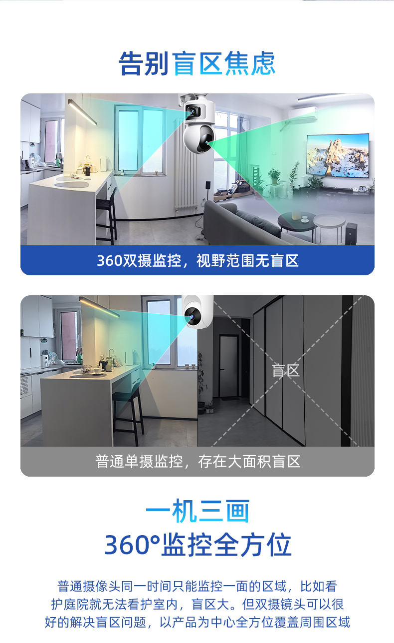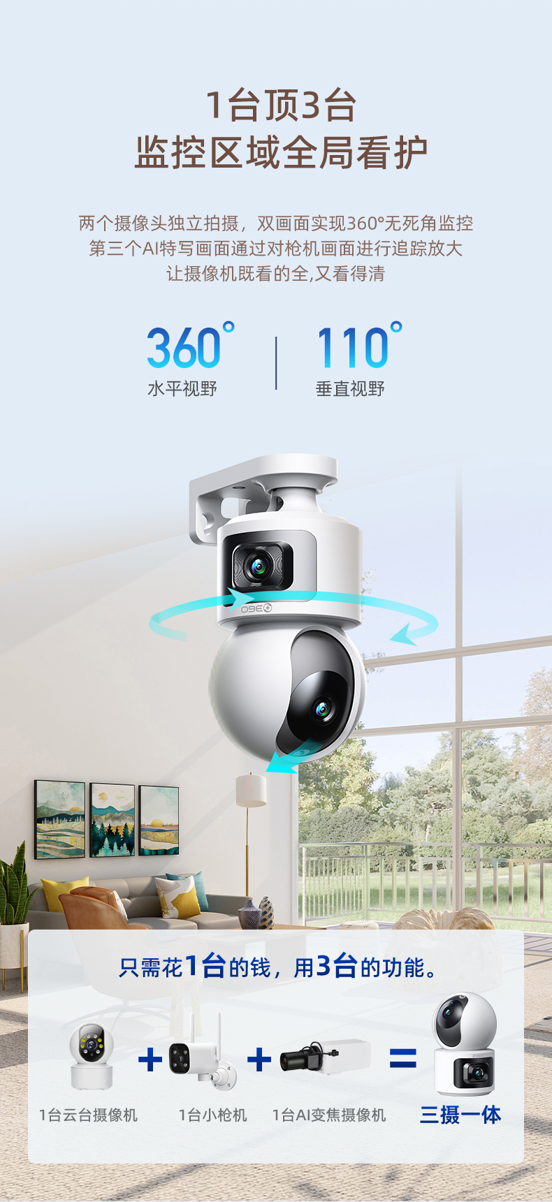【专属】360云台摄像机8Pro 4K 超清画质 星光级超微光全彩 360°全景视角 蓝牙闪连配网 人形侦测警报 镜头隐私遮蔽