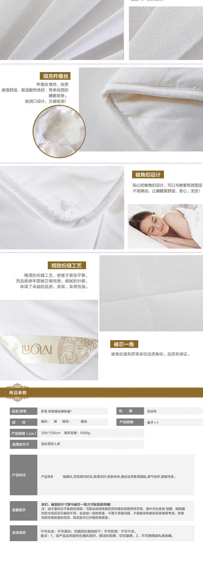 罗莱 舒爽蚕丝春秋被200*230cm
