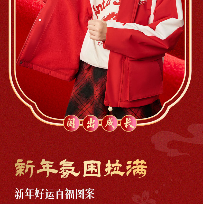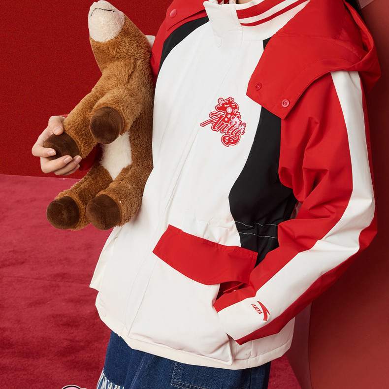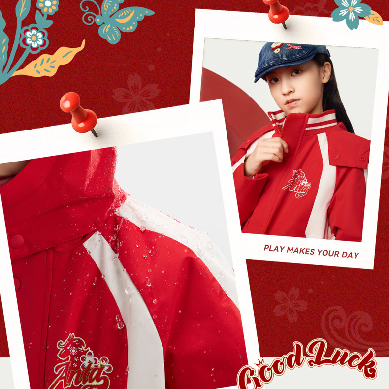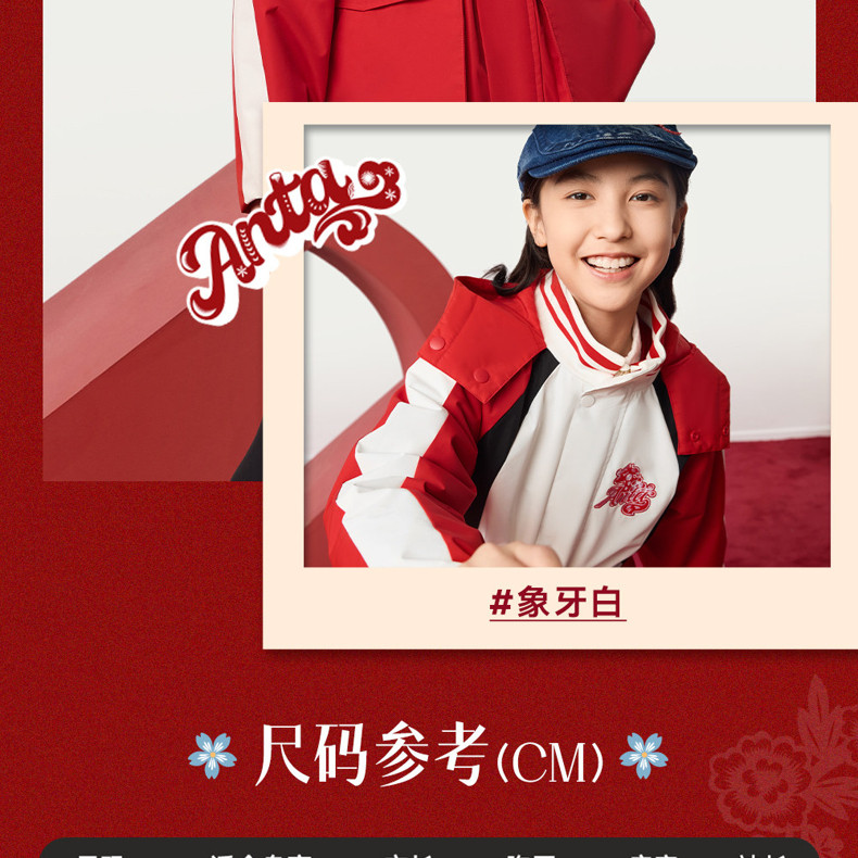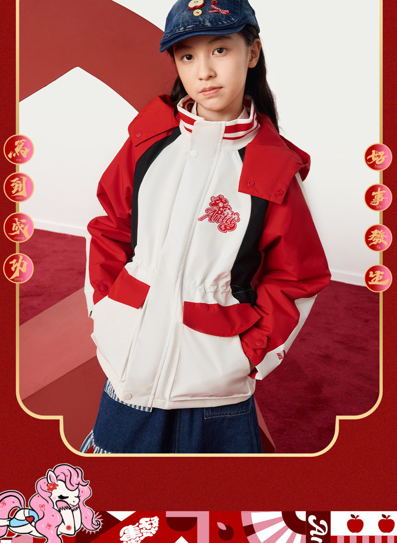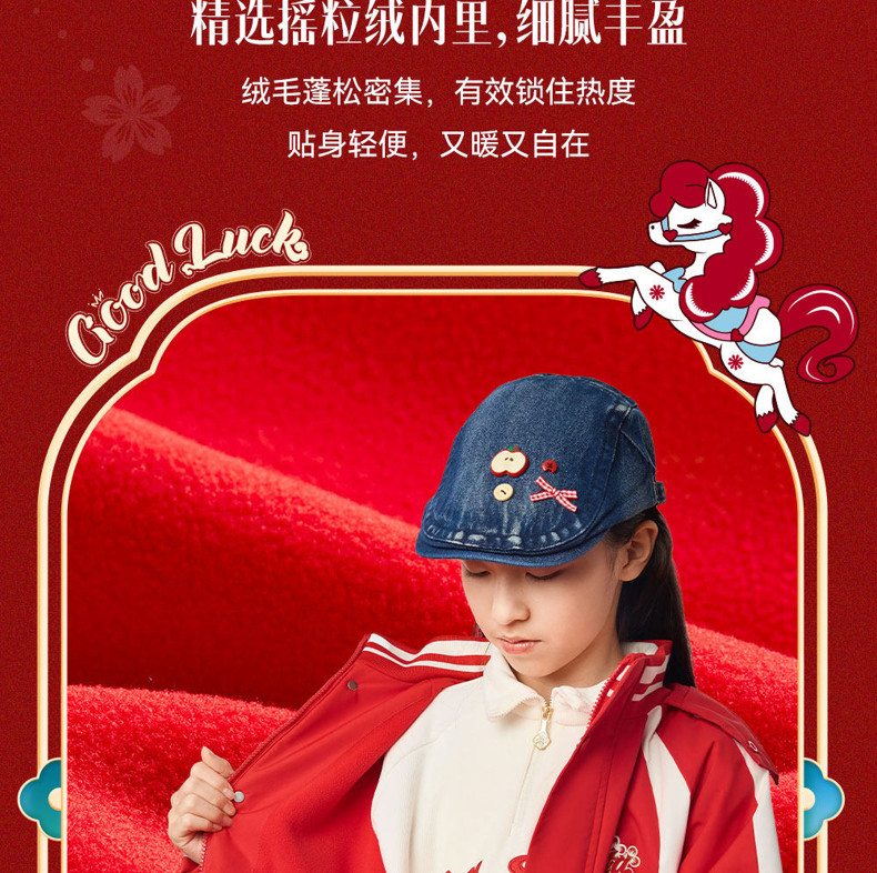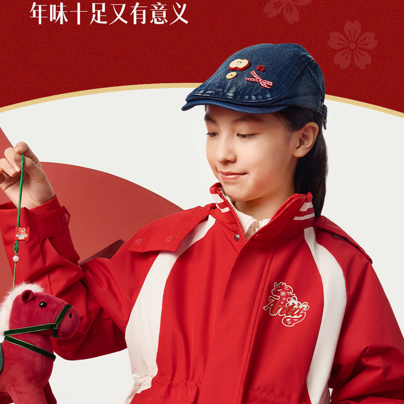 晴雨甲安踏儿童女大童摇粒绒运动上衣2026新年红色保暖喜庆厚外套362618688S