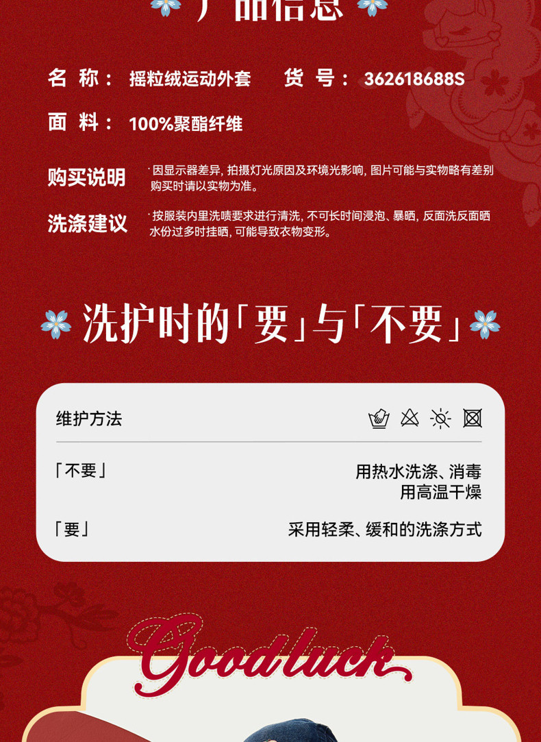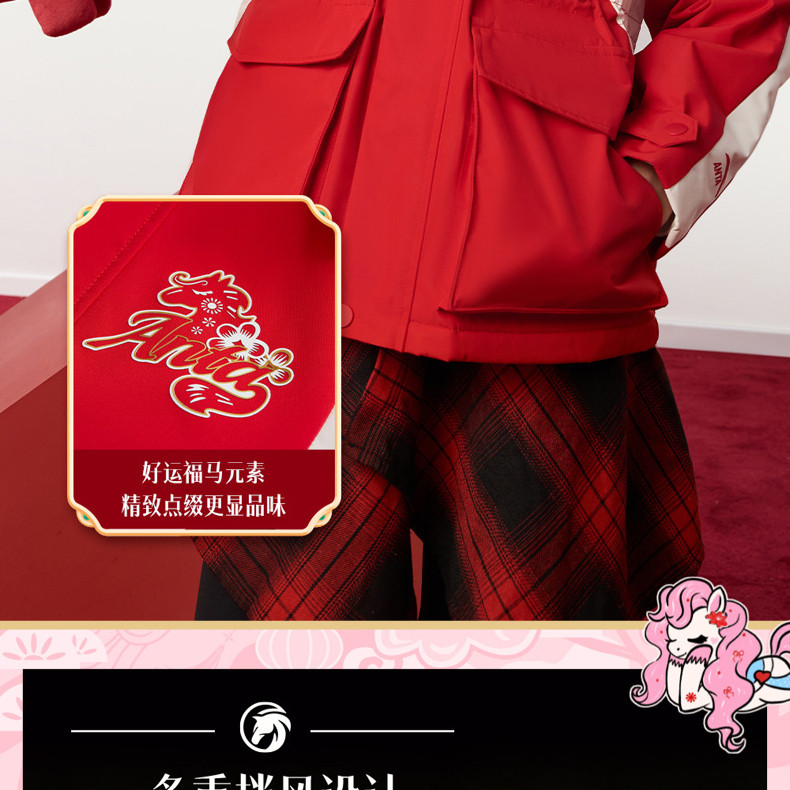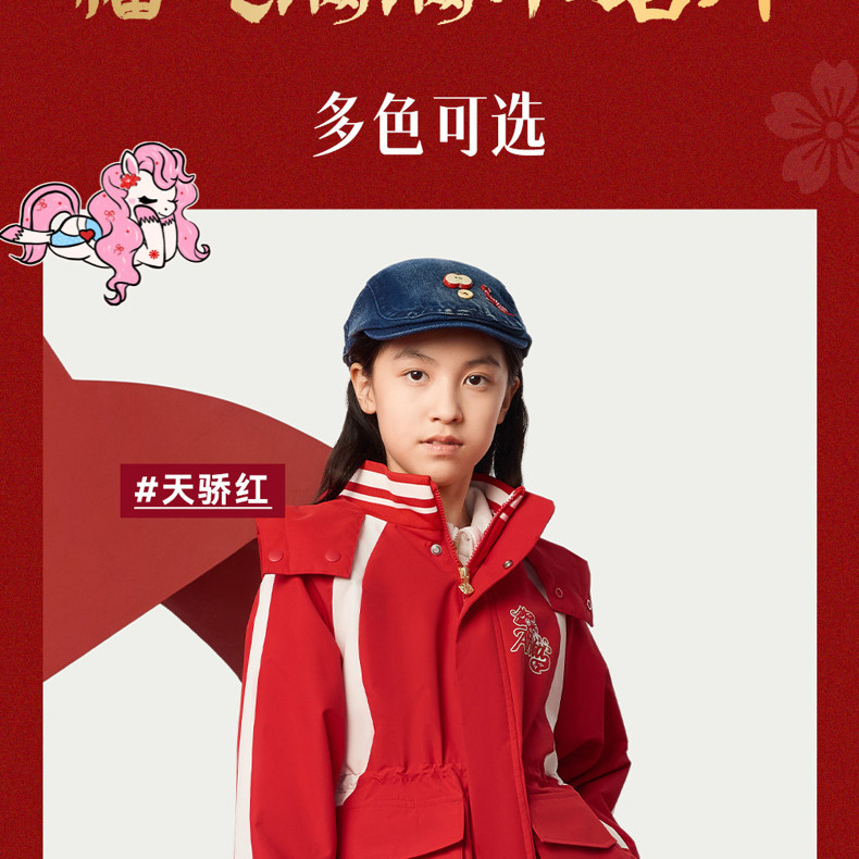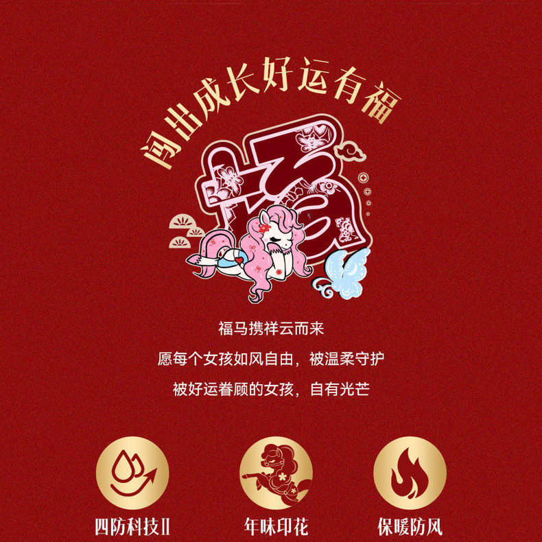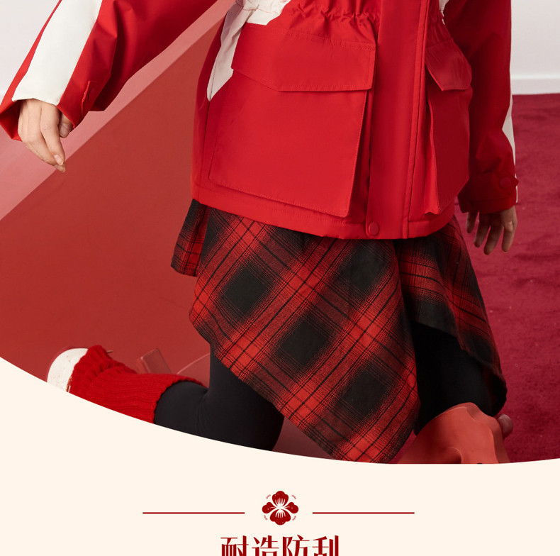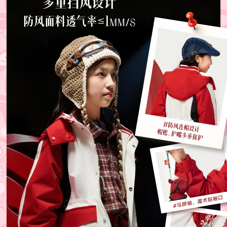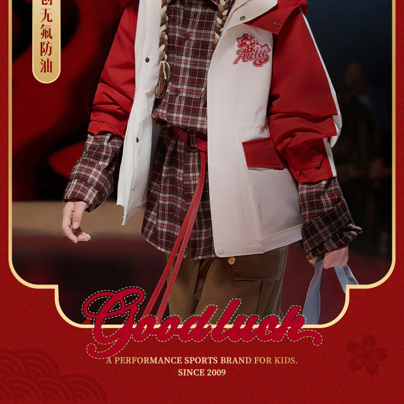 晴雨甲安踏儿童女大童摇粒绒运动上衣2026新年红色保暖喜庆厚外套362618688S