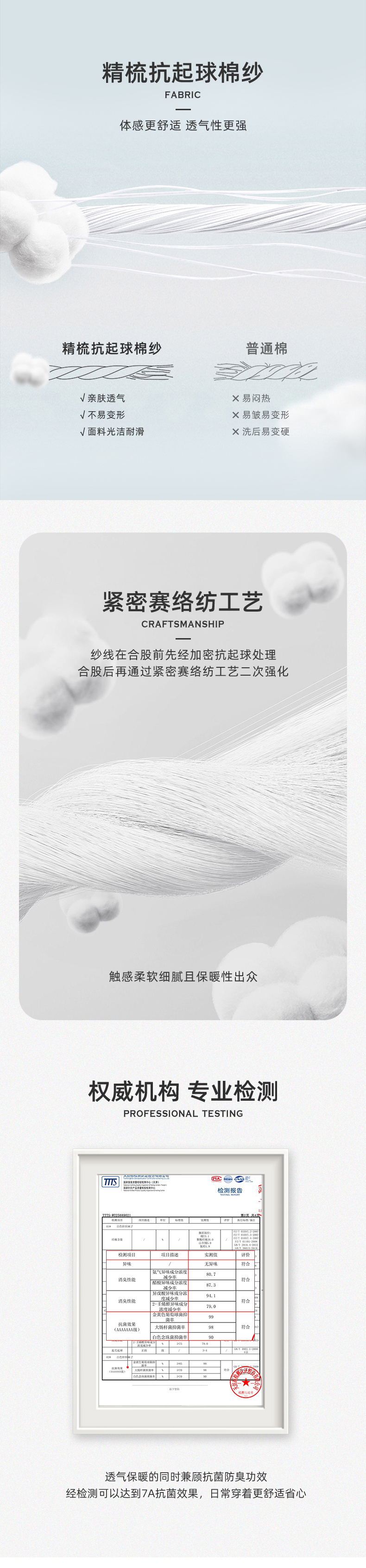 不易起球!!7A抗菌效果!