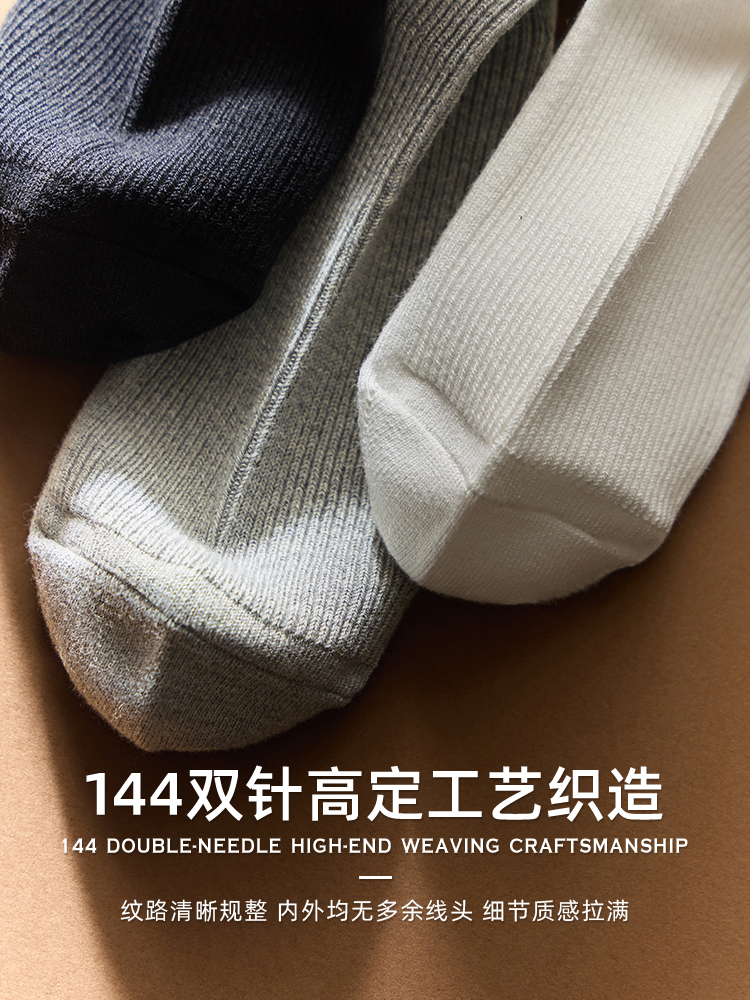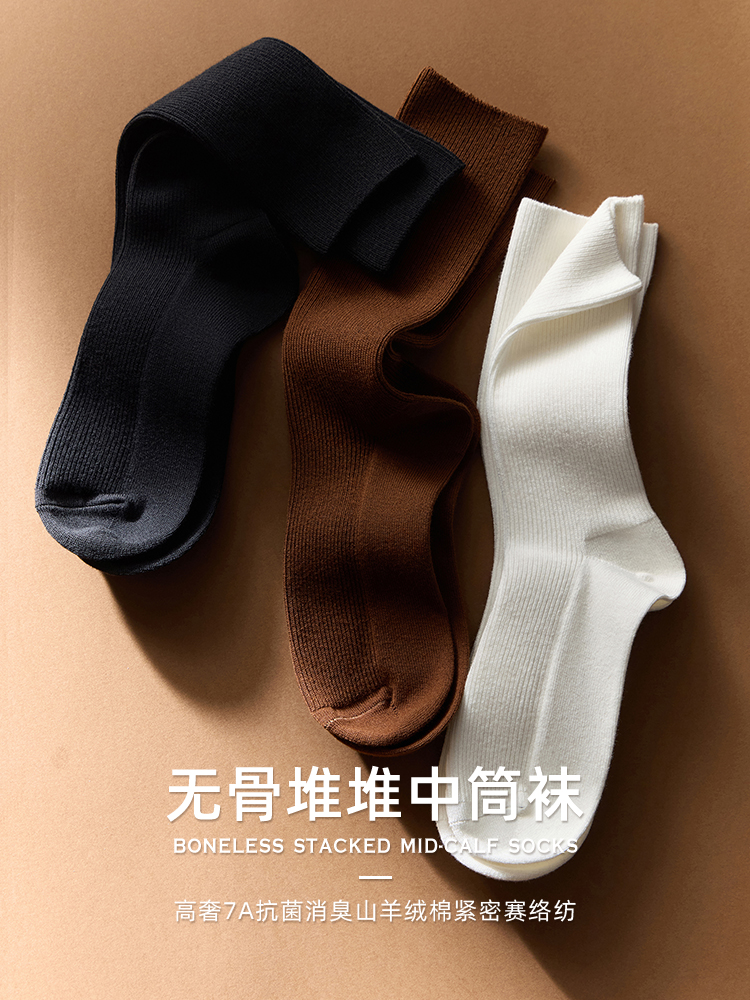 高奢7A抗菌消臭山羊绒棉紧密赛络纺双针无骨堆堆中筒袜