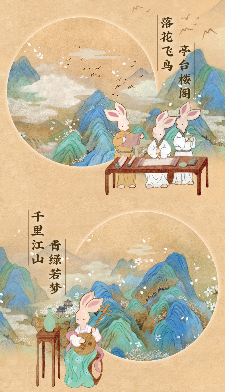 1500片 平面塑料拼图 H3328 添添Emily-兔崽崽系列-千里江山·青绿若梦
