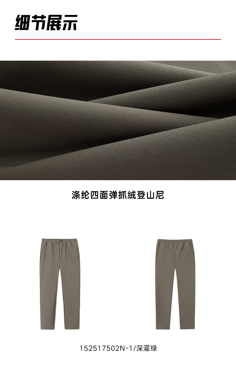 安踏(ANTA)型动裤丨防泼水运动长裤男冬季新款磨毛保暖直筒裤152517502N