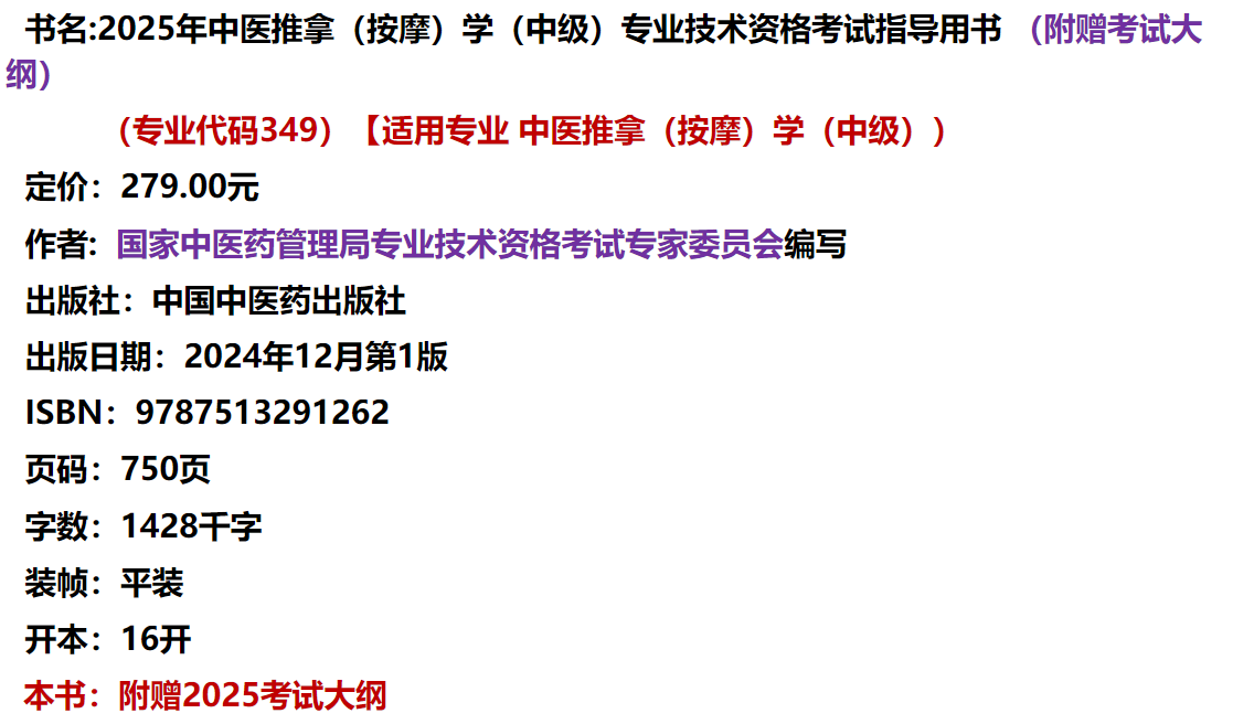 2025年中医推拿(按摩)学(中级)专业技术资格考试指导用书 专业代码349 国家中医药管理局专业技术资格考试委员会 中医药出版社