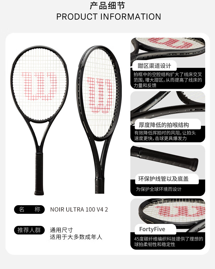 威尔胜(Wilson)NOIR系列小黑拍碳纤维单人专业网球拍全碳素一体专业拍 【NOIR Ultra】WR141111U2