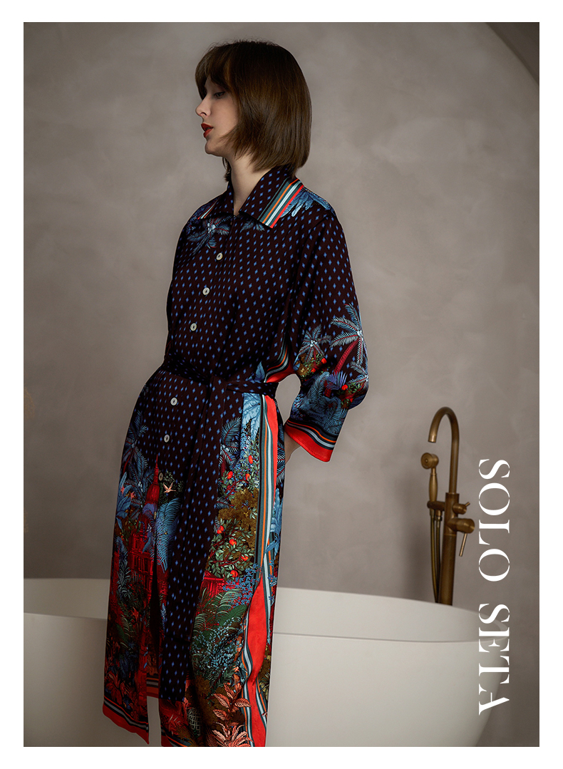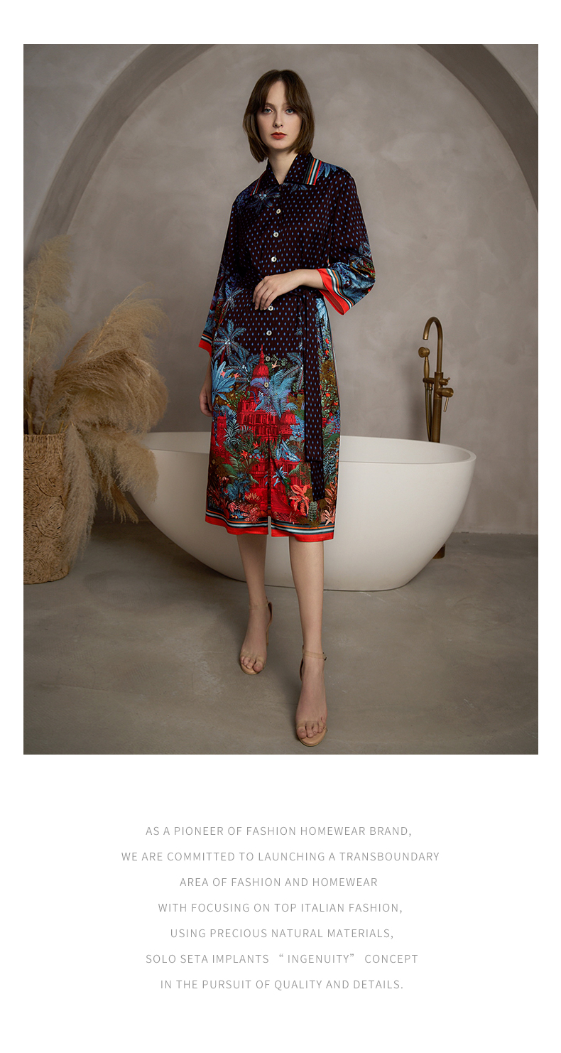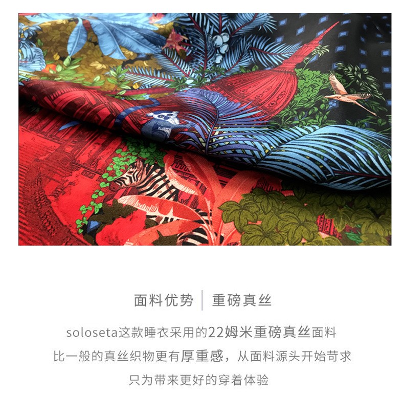 - soloseta专注于真丝织物,灵感源自意大利语,中文含义为“只做真丝”的意思。让睡衣变时尚,居家和外出瞬间切换,使其更具有出街,度假,参加宴会等功能。