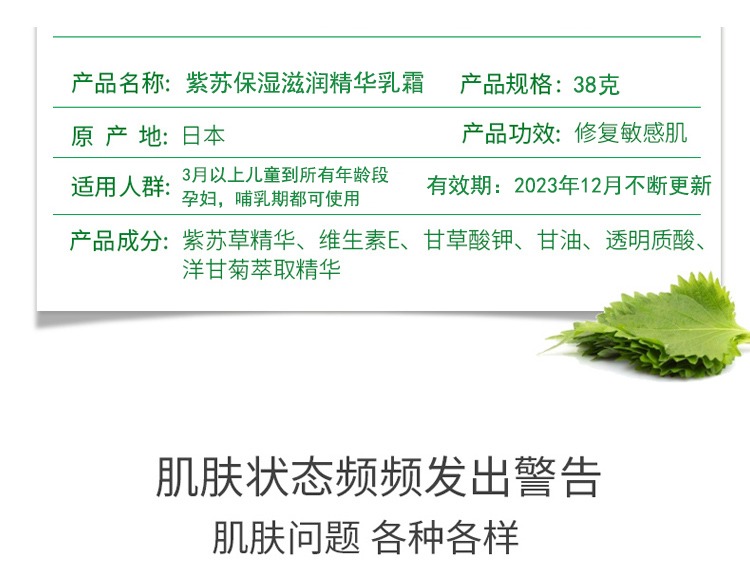悠斯晶紫苏滋润精华乳霜38g【保质期:2025年12月31日】