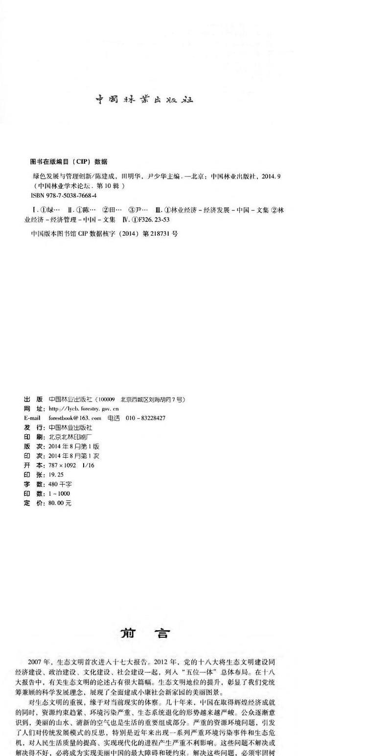 绿色发展与管理创新(中国林业学术论坛第10辑) 7668 科技