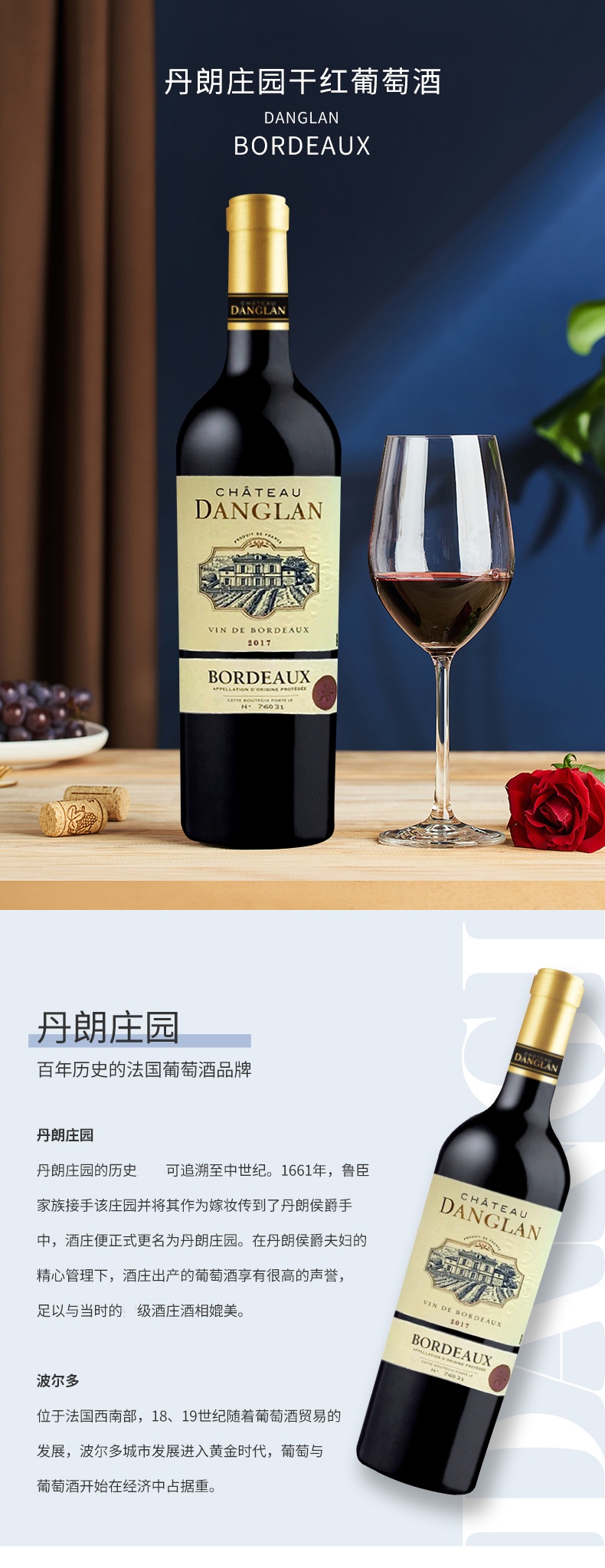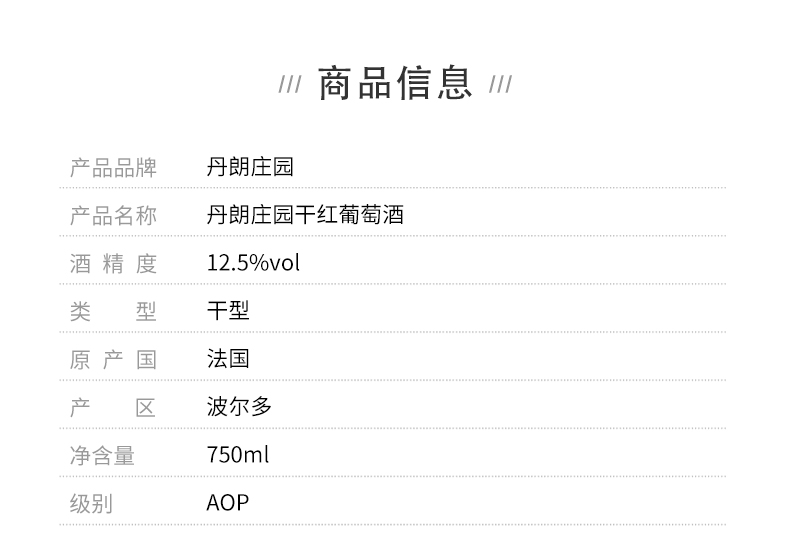 【法国进口】丹朗庄园干红葡萄酒 12.5%vol 750ml/瓶