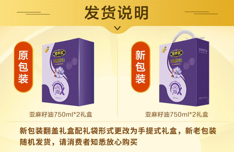 中粮 福临门营养家亚麻籽油礼盒750ml*2