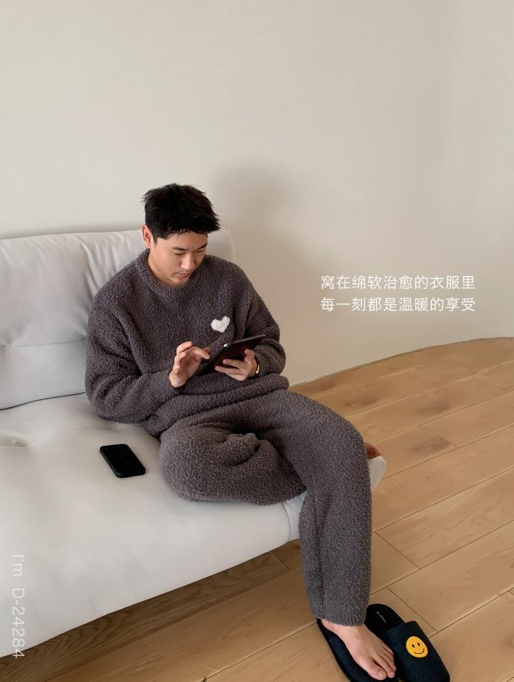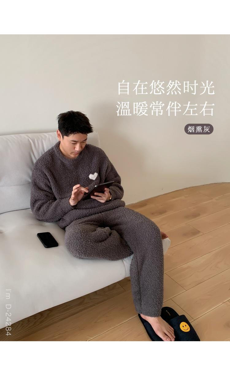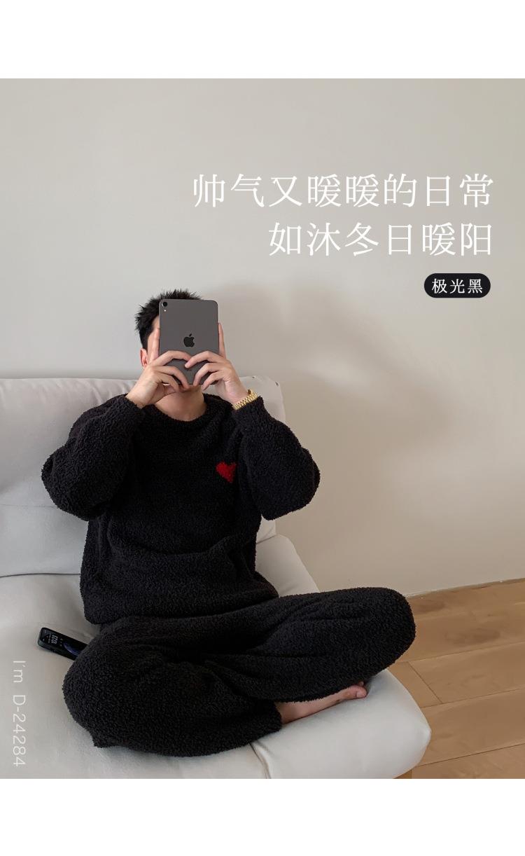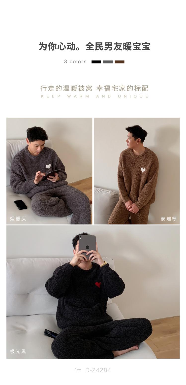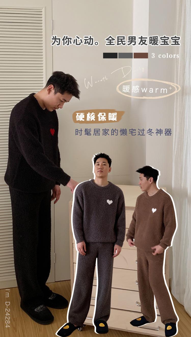 杜小宅半边绒睡衣男冬季家居服套装爱心软绵绵加绒加厚家居服套装
