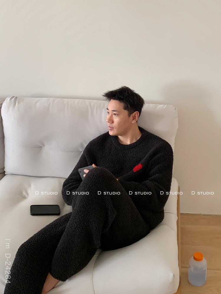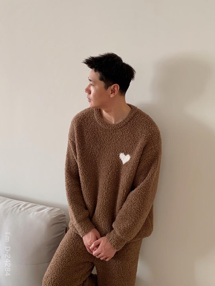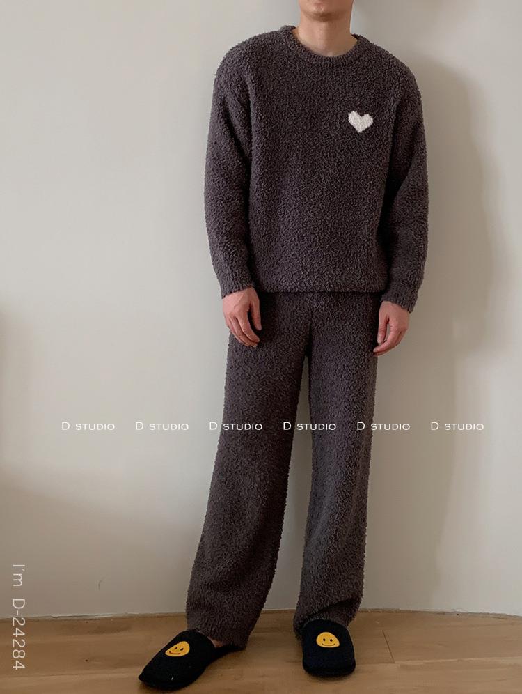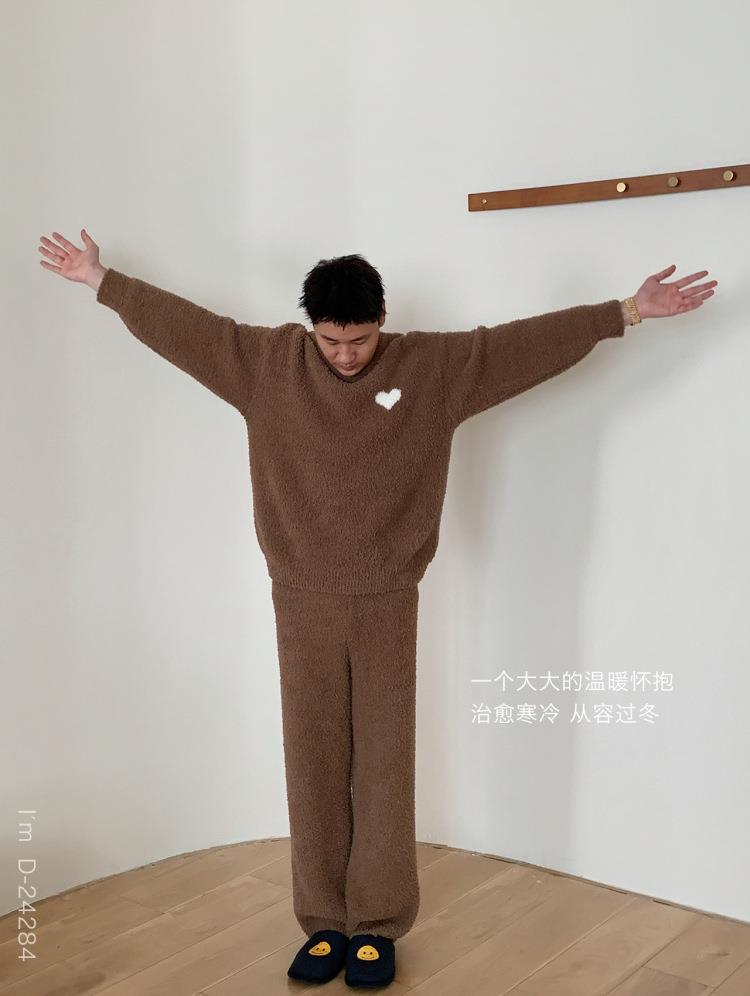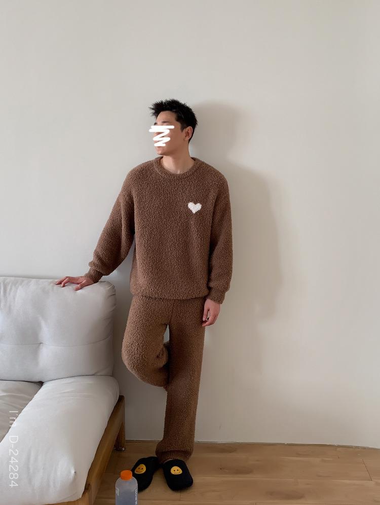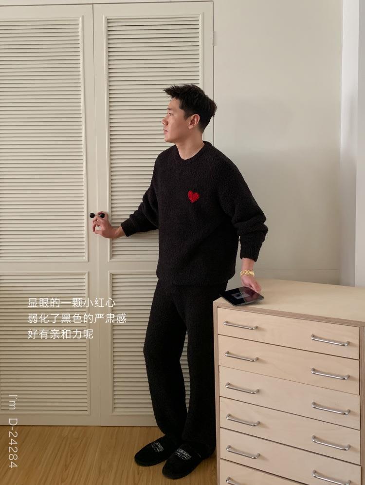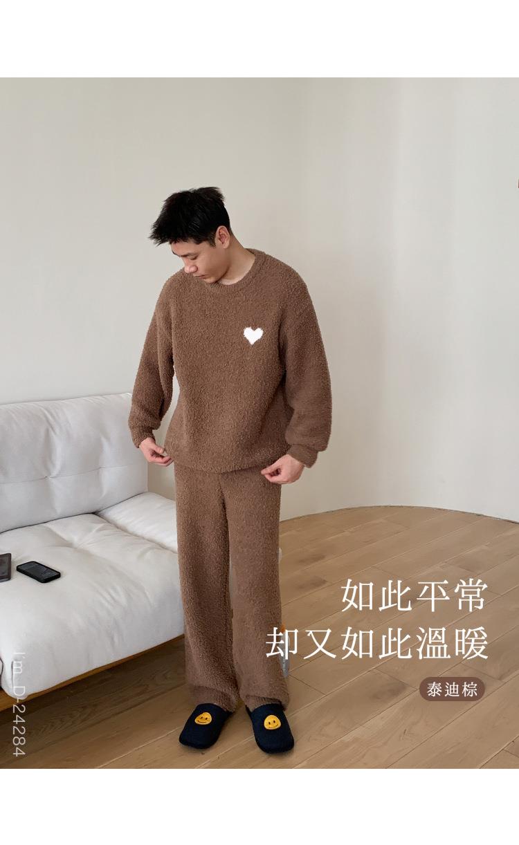 杜小宅半边绒睡衣男冬季家居服套装爱心软绵绵加绒加厚家居服套装
