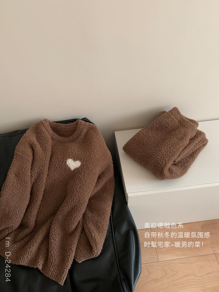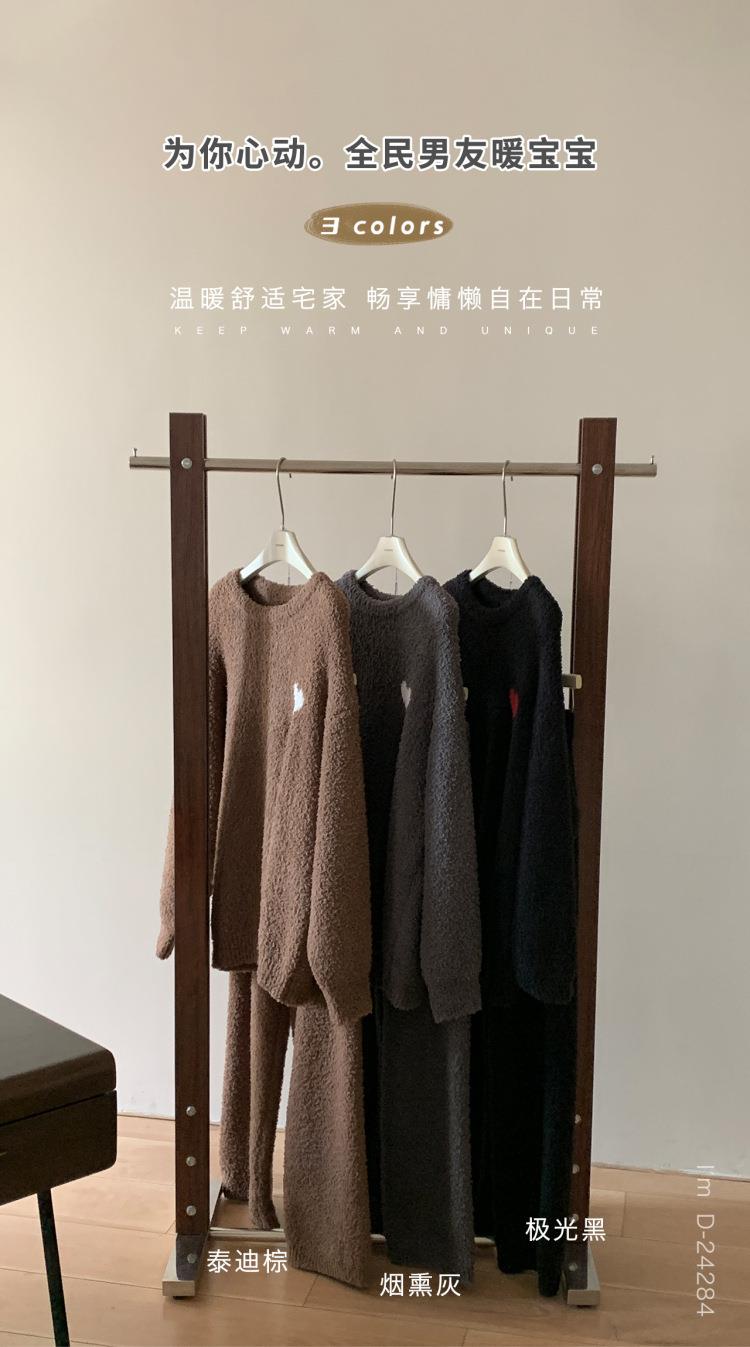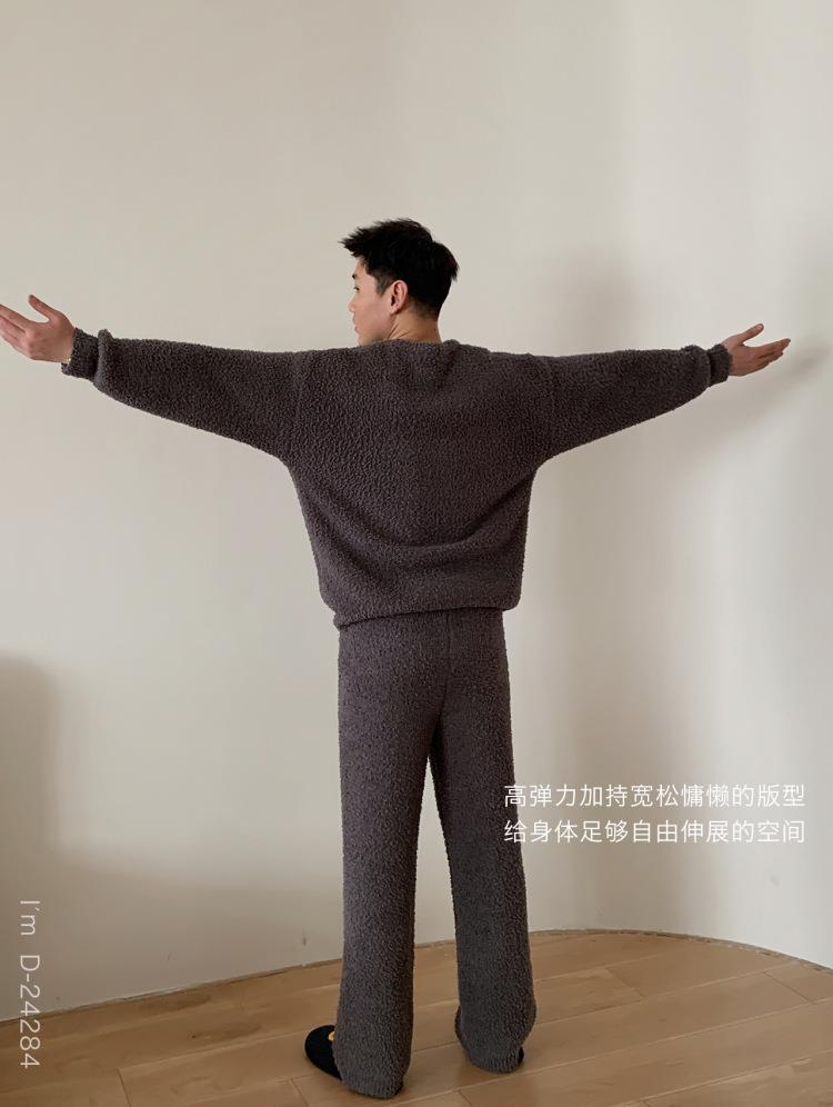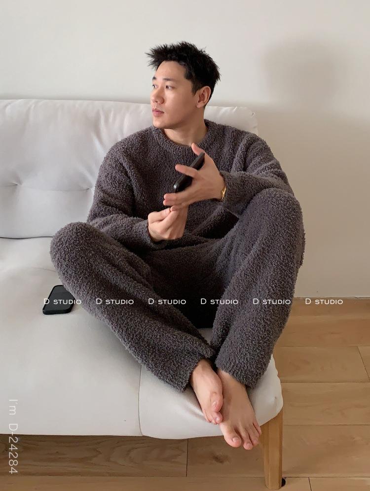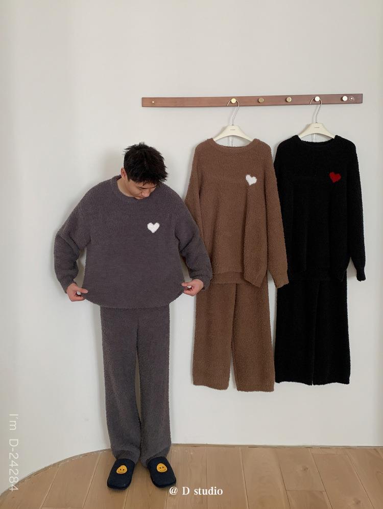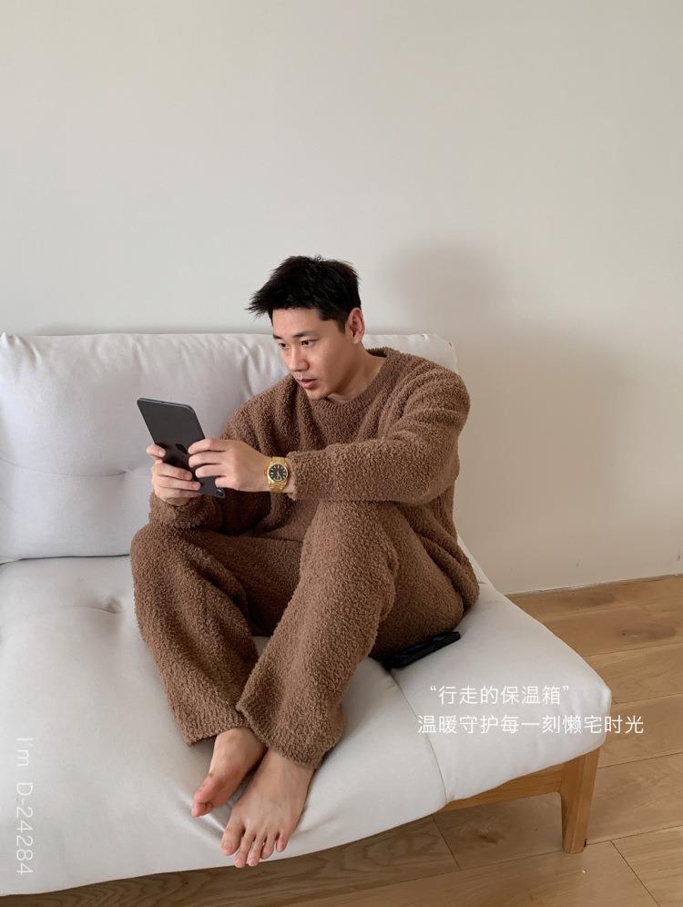 杜小宅半边绒睡衣男冬季家居服套装爱心软绵绵加绒加厚家居服套装