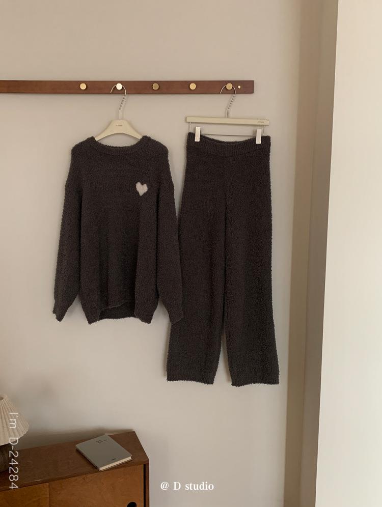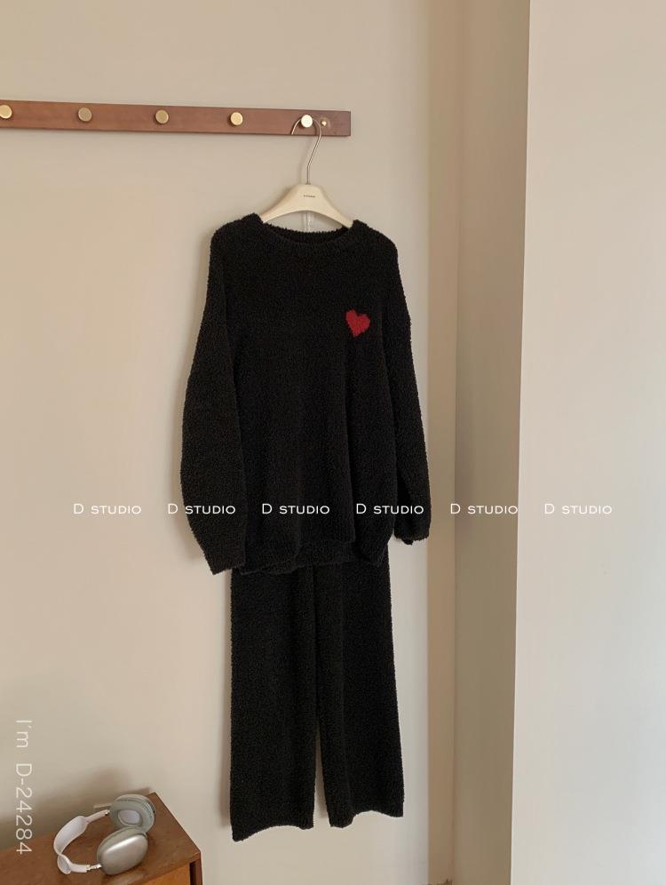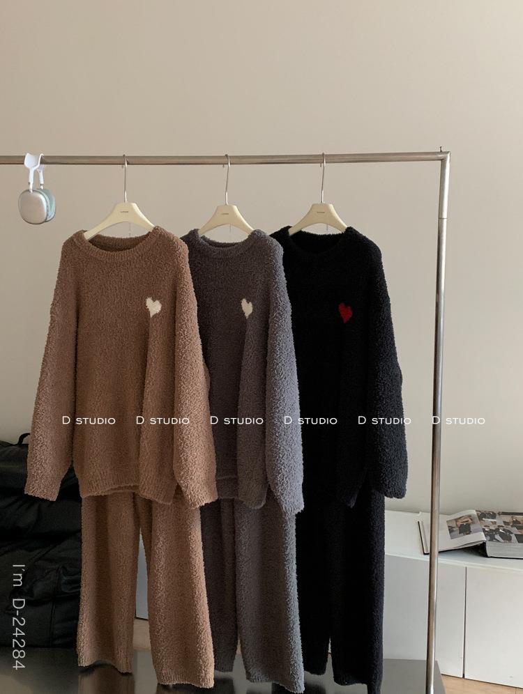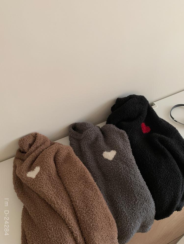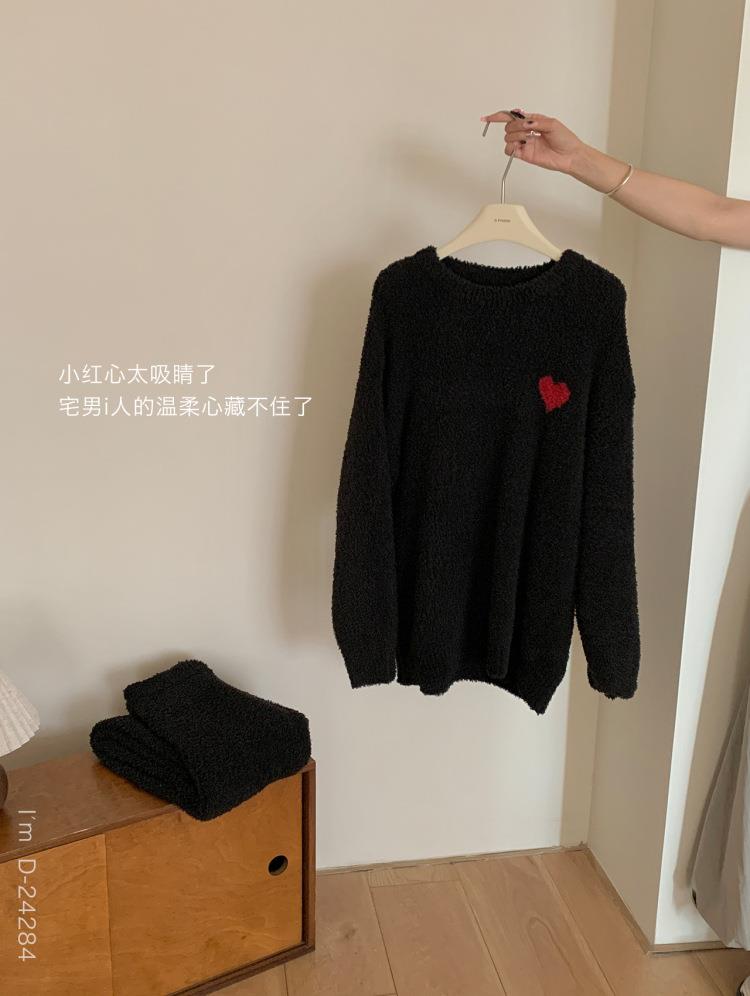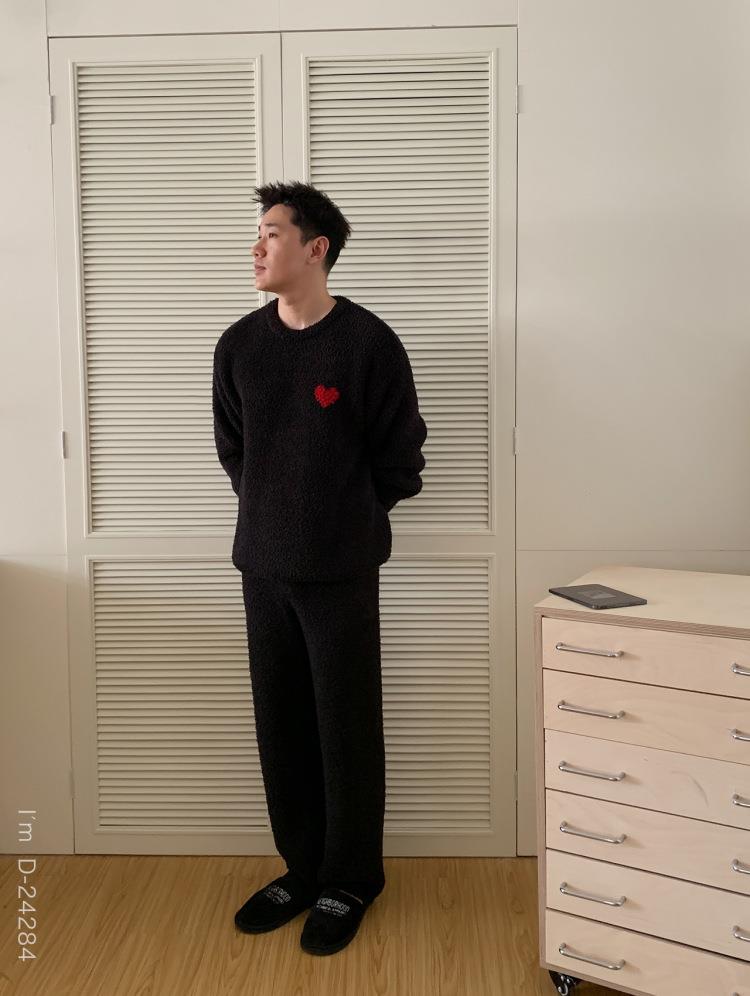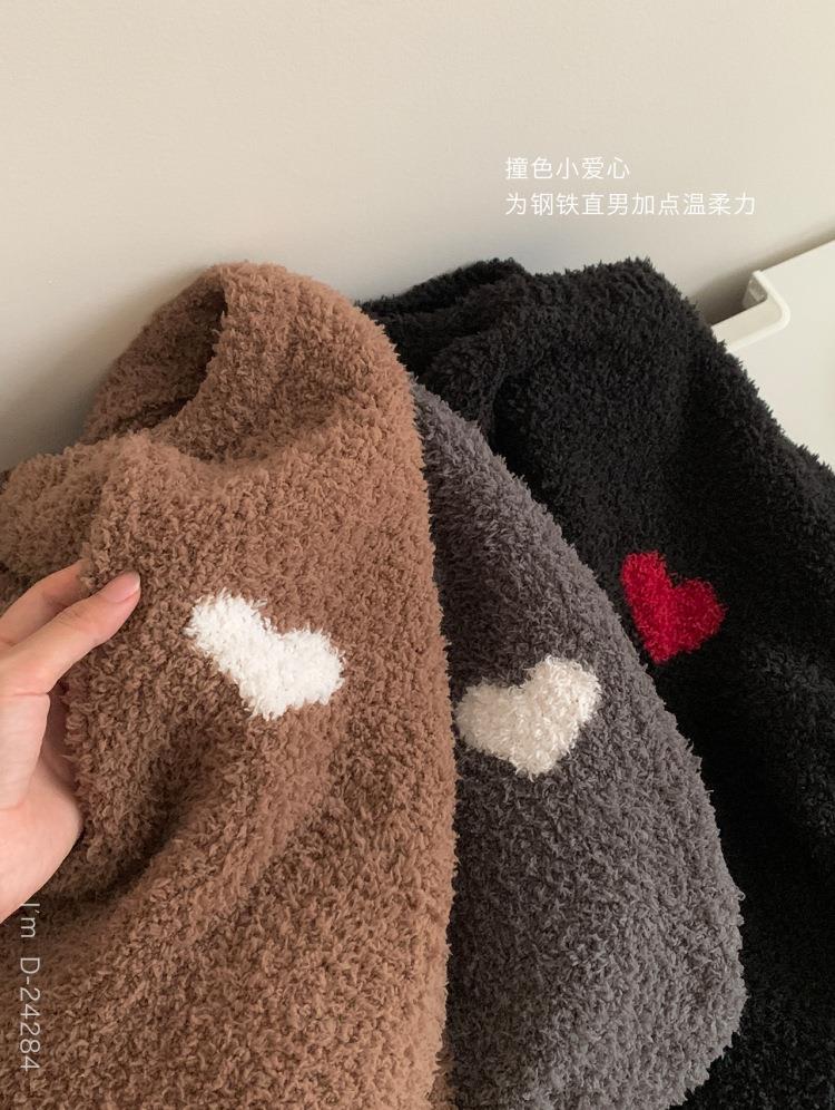 杜小宅半边绒睡衣男冬季家居服套装爱心软绵绵加绒加厚家居服套装