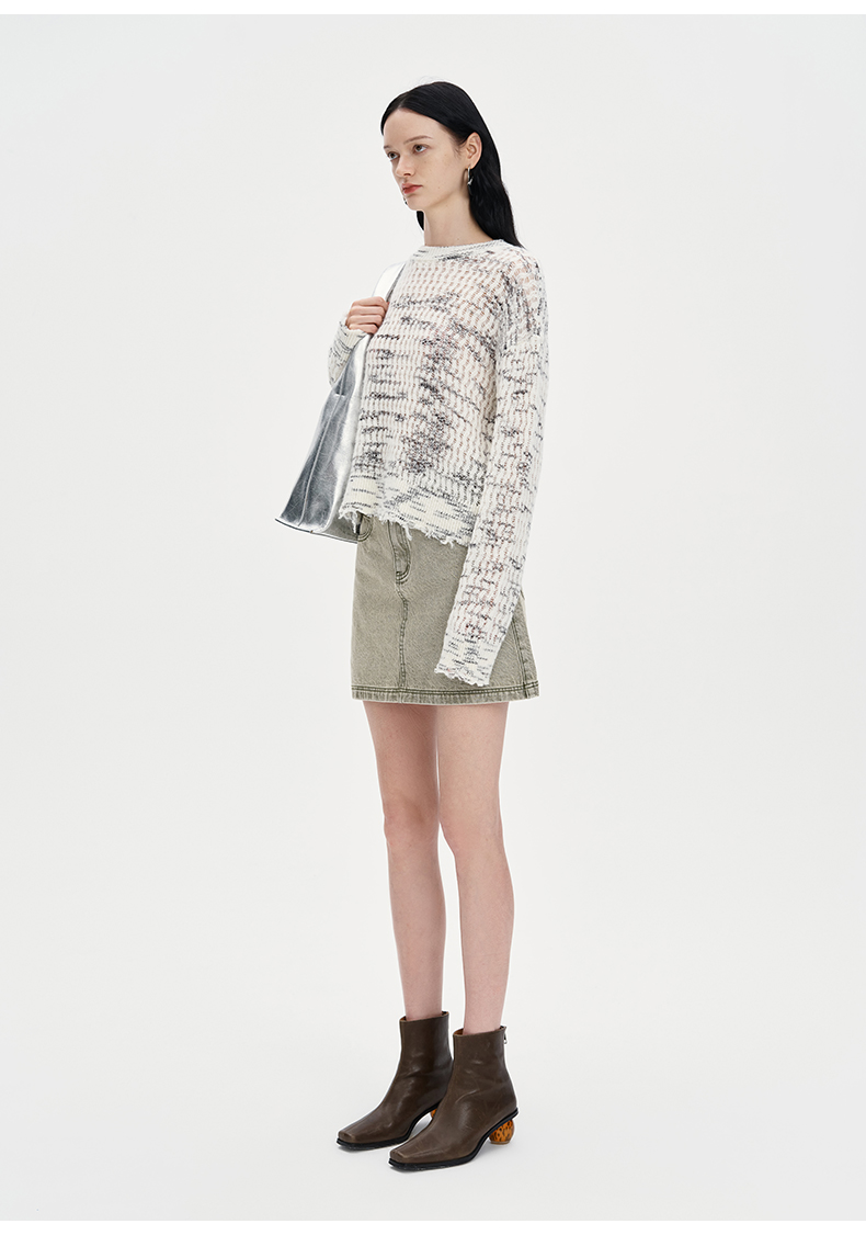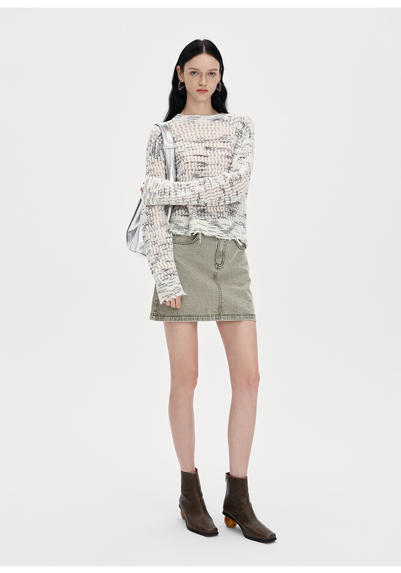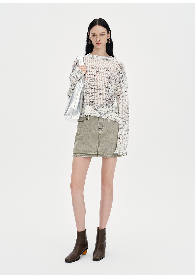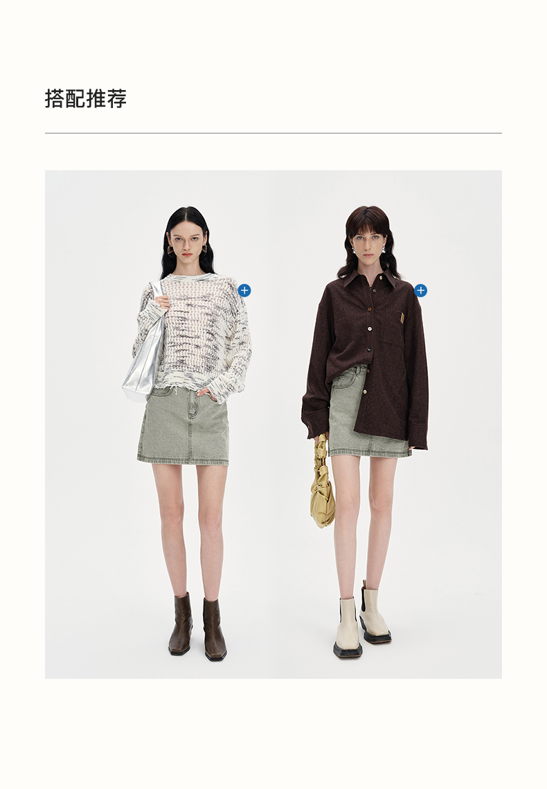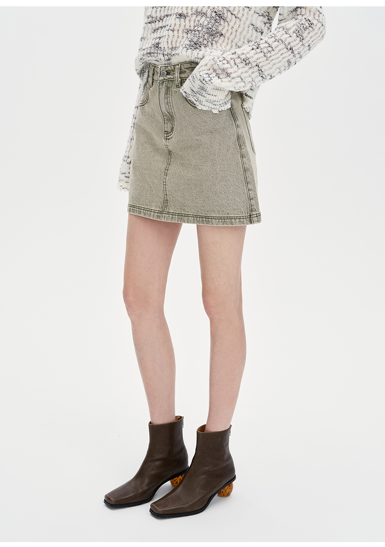 SELFWHO复古做旧纯棉牛仔短裙女2024秋季新款高腰包臀a字半身裙子