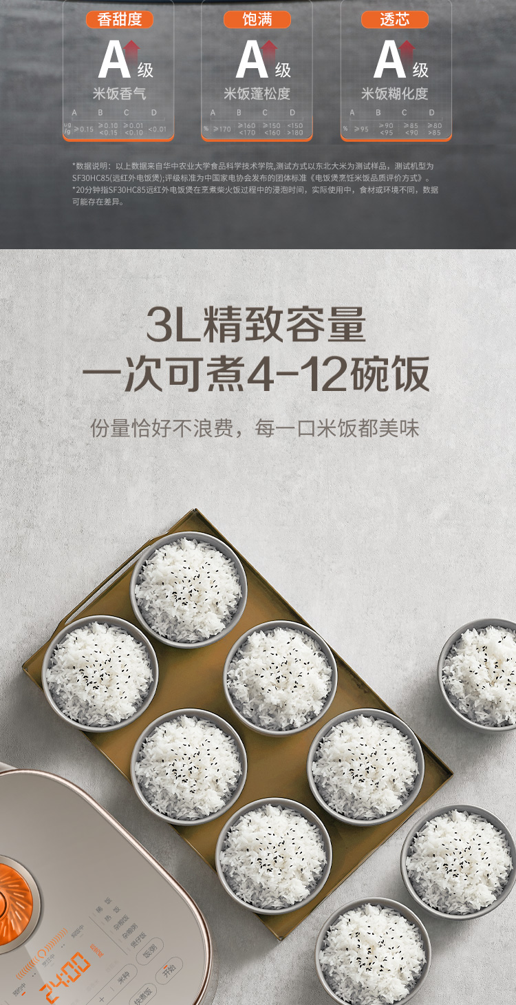 苏泊尔远红外本釜电饭煲家用智能3L小容量电饭锅新款SF30HC85