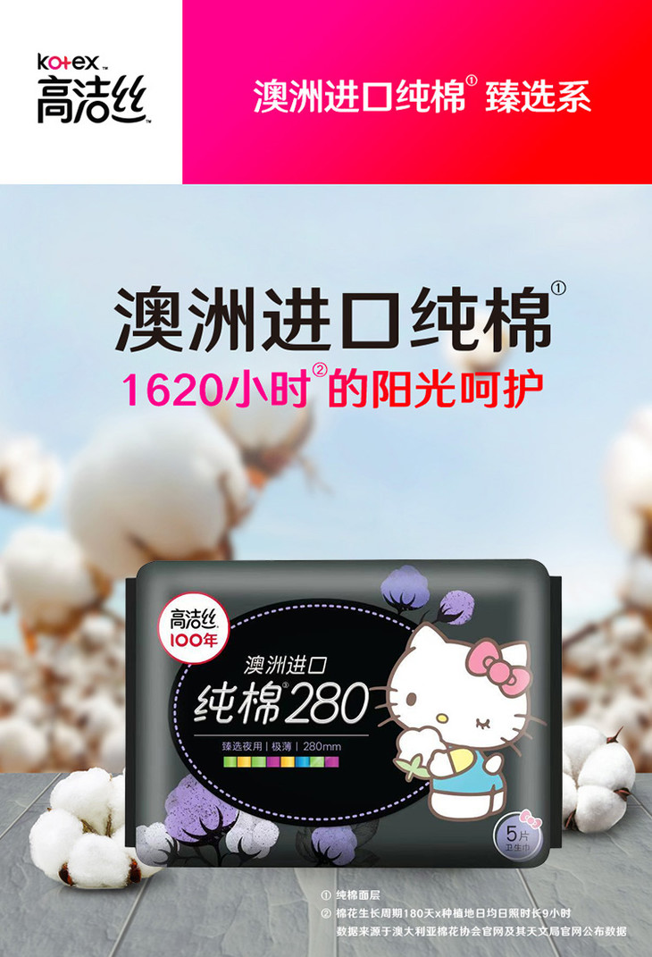 高洁丝臻选卫生巾极薄纯棉夜用280mm5片