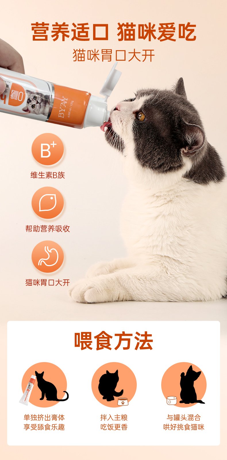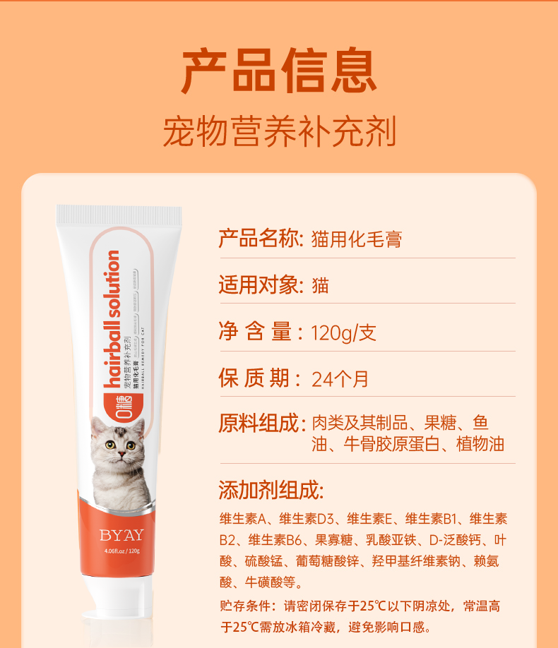 byay猫咪化毛膏0糖顺肠胃排毛球