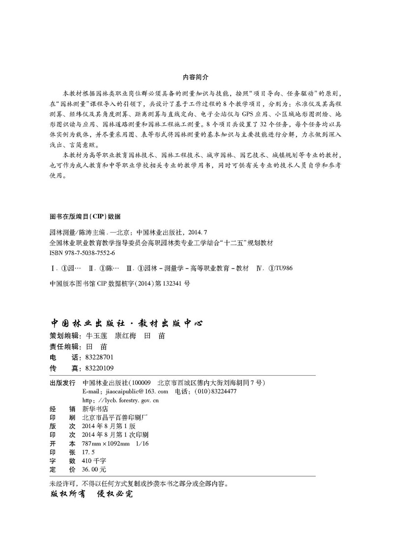 园林测量 7552 陈涛 全国林业职业教育教学指导委员会 高职园林类专业工学结合十二五规划教材 中国林业出版社 畅销书