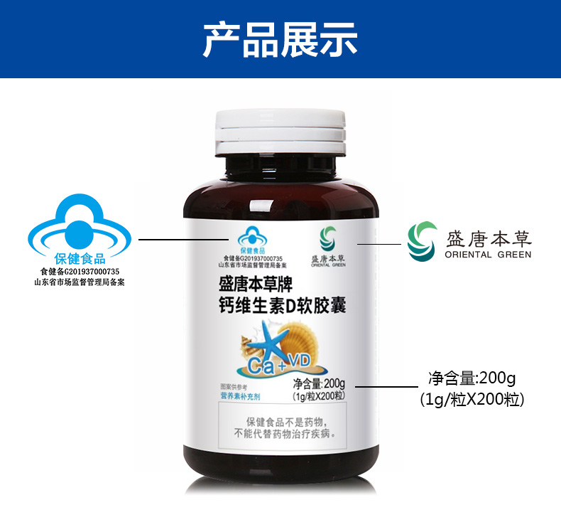 优选丨【3瓶装】盛唐本草钙维生素D软胶囊 1g/粒*200粒/瓶 液体钙 全家补钙