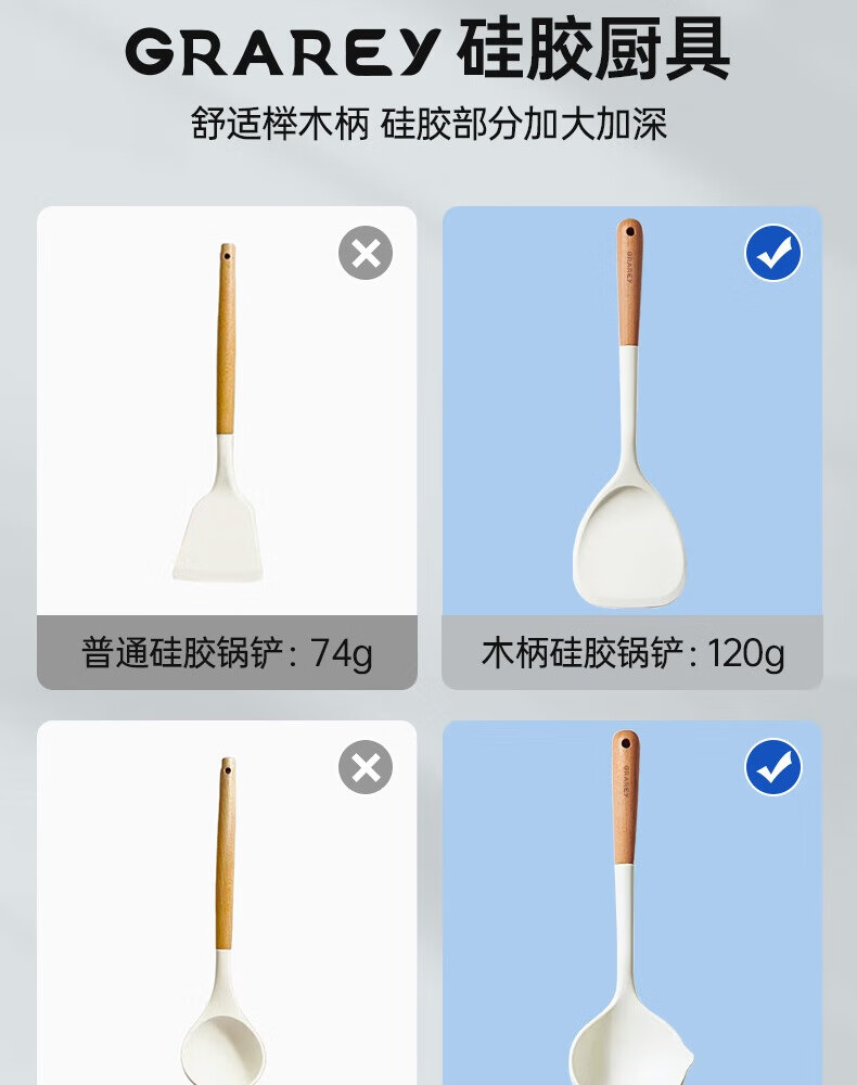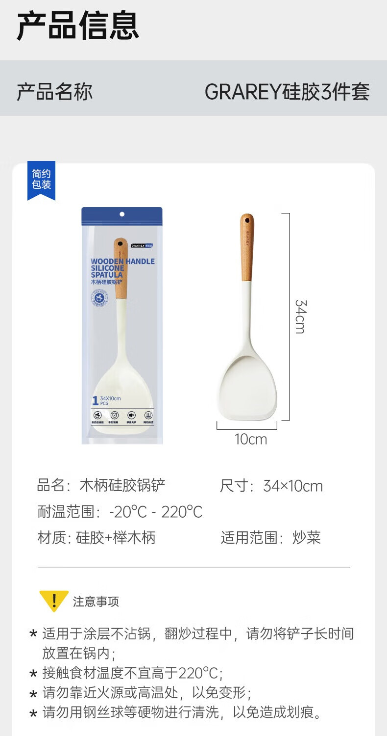 GRAREY 木柄锅铲三件套 锅铲+大汤勺+饭勺