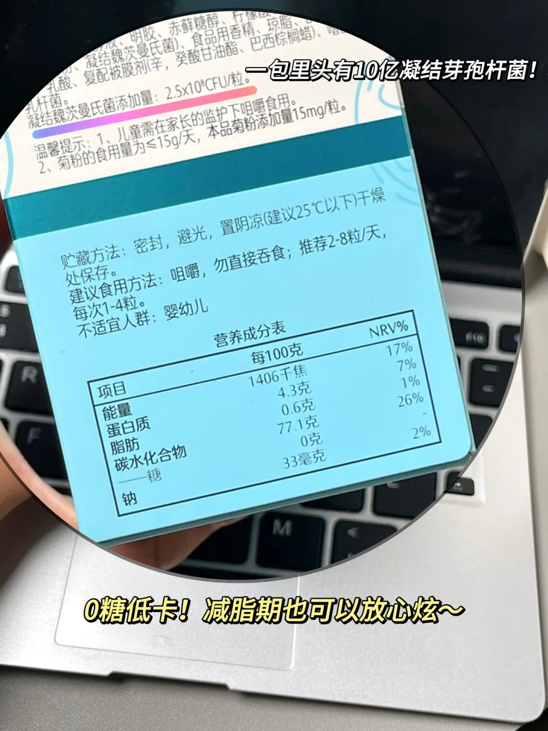 注意事项:推荐每天2-8粒,每次1-4粒;儿童需在家长的监护下咀嚼食用。孕妇遵医嘱,4岁以下人群婴幼儿不能吃