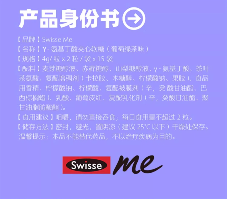 SWISSE ME y-氨基丁酸夹心软糖(葡萄绿茶味)