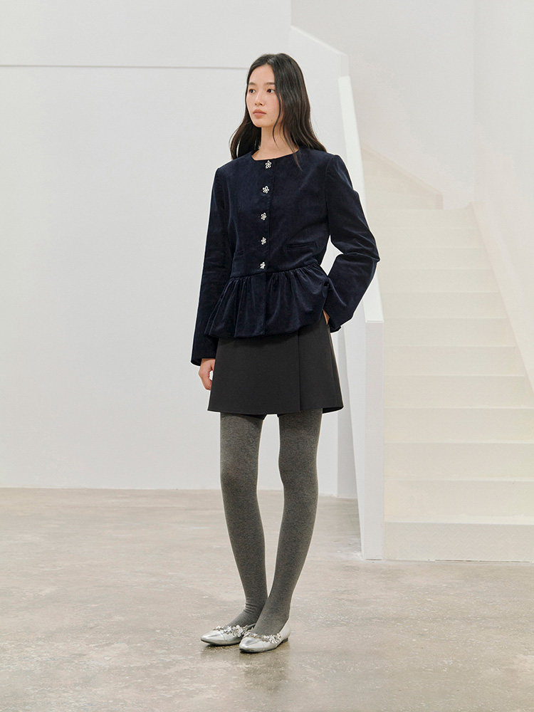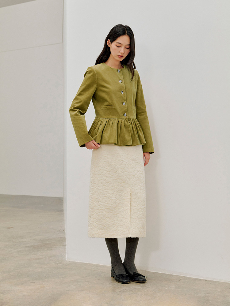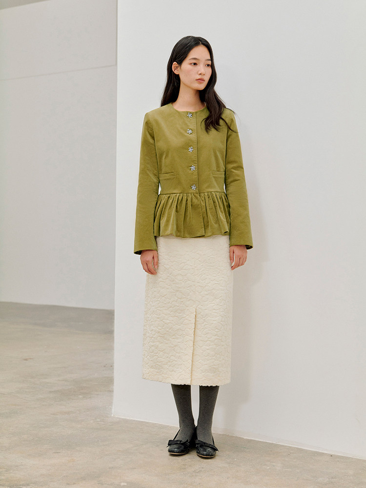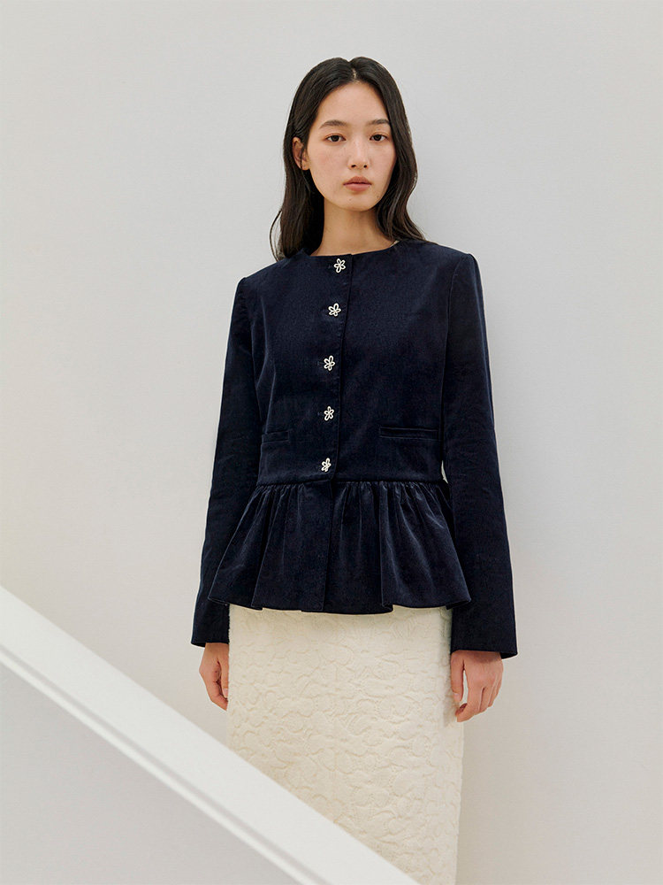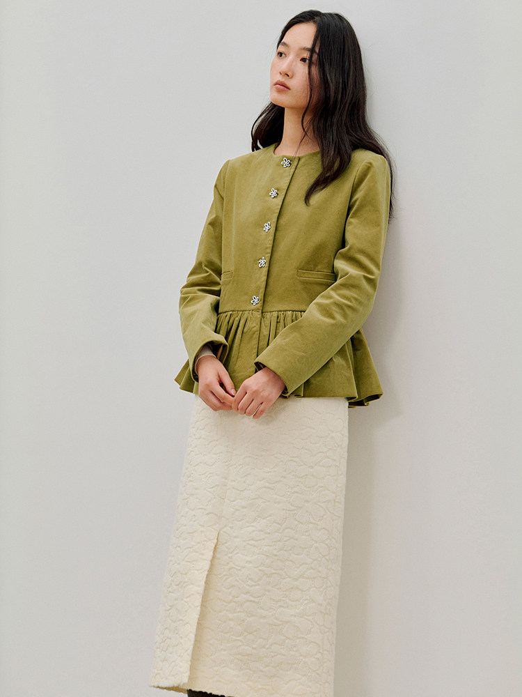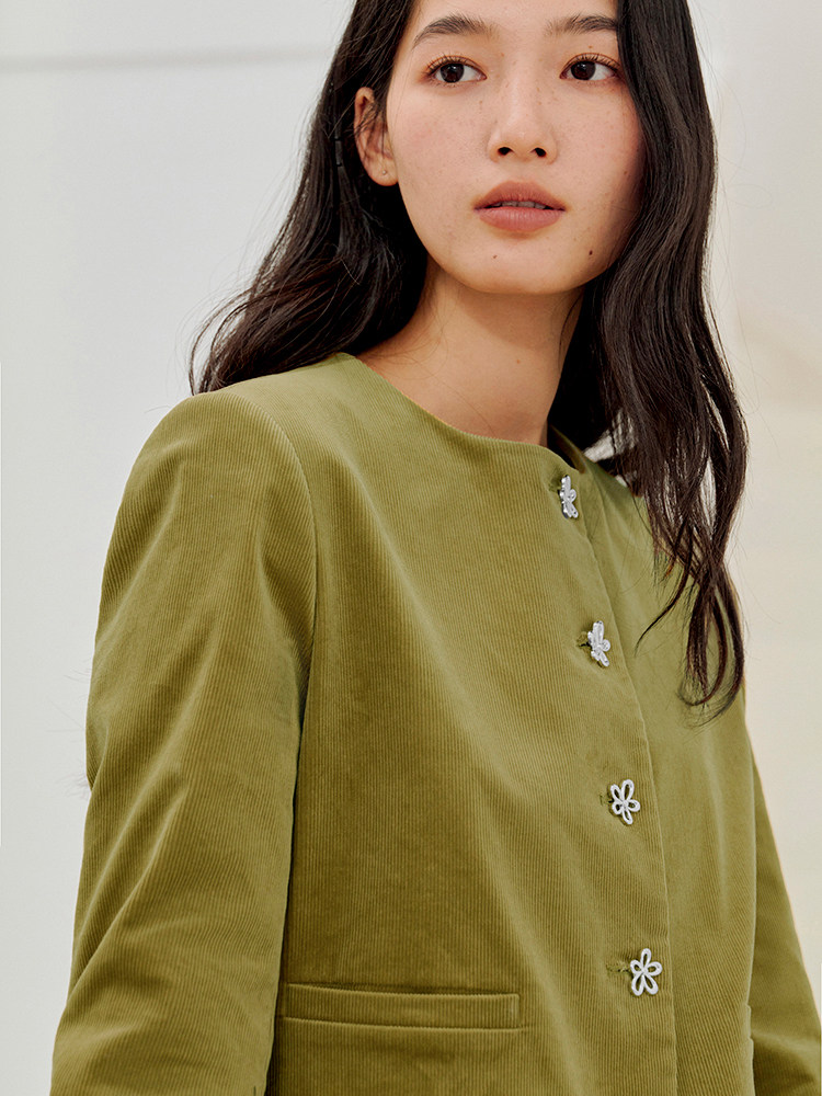 ForPoem 现货 26/SS原创设计感复古金属花扣荷叶边灯芯绒外套