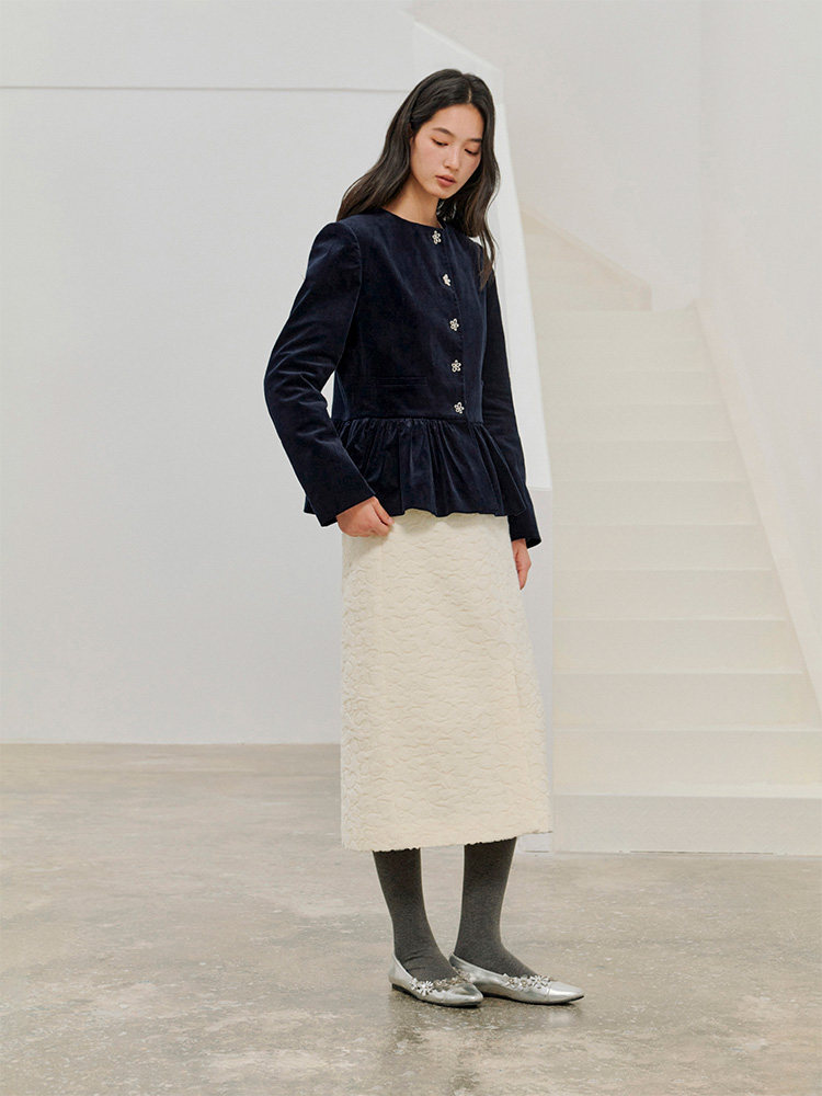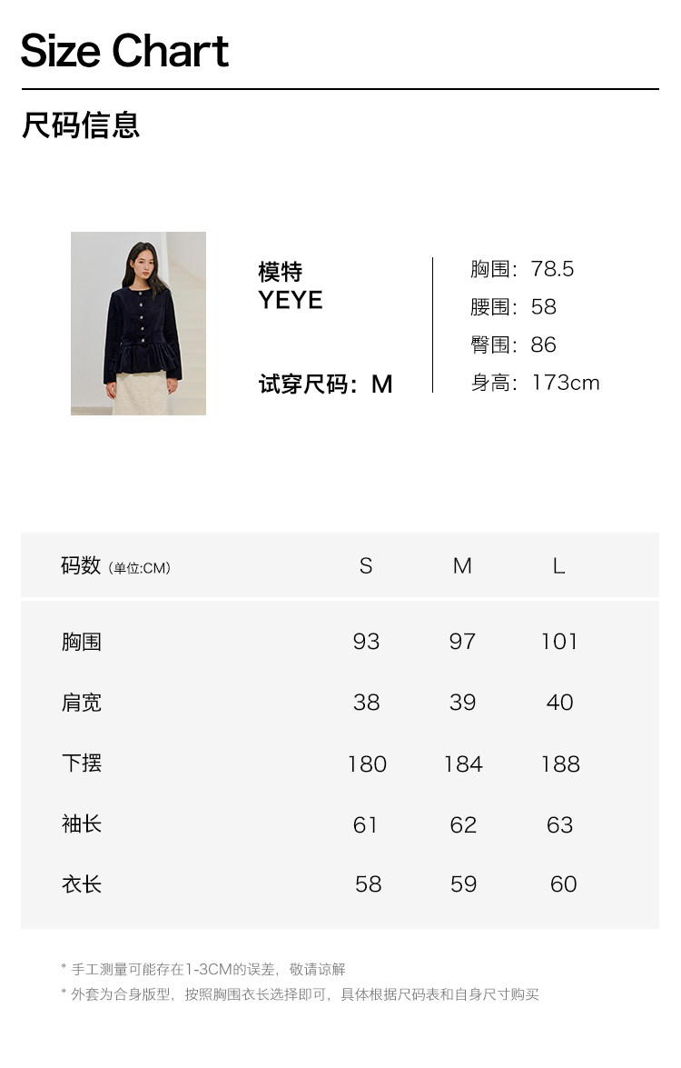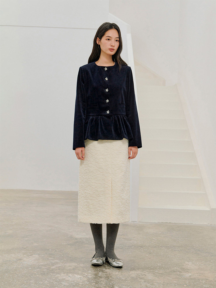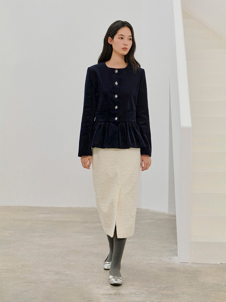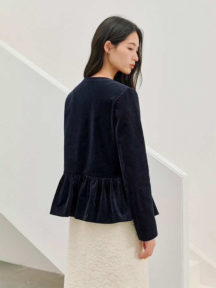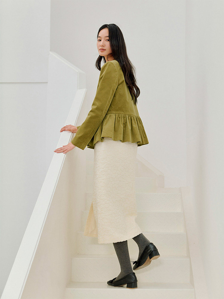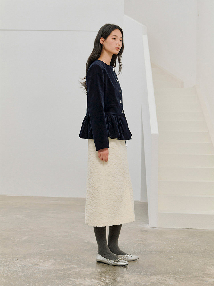 ForPoem 现货 26/SS原创设计感复古金属花扣荷叶边灯芯绒外套