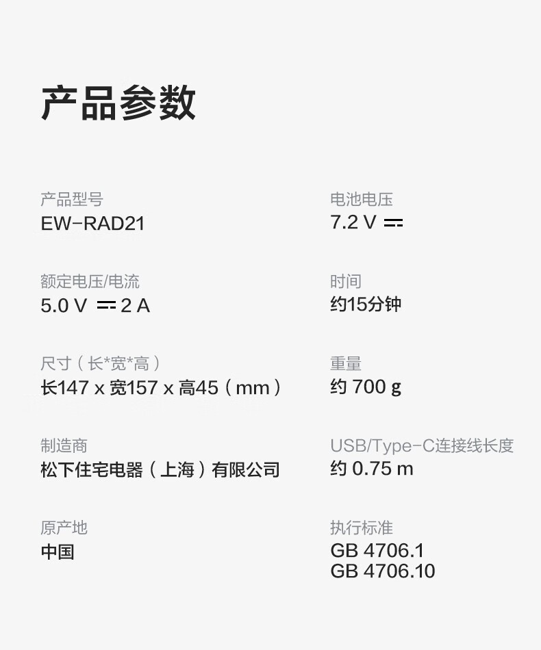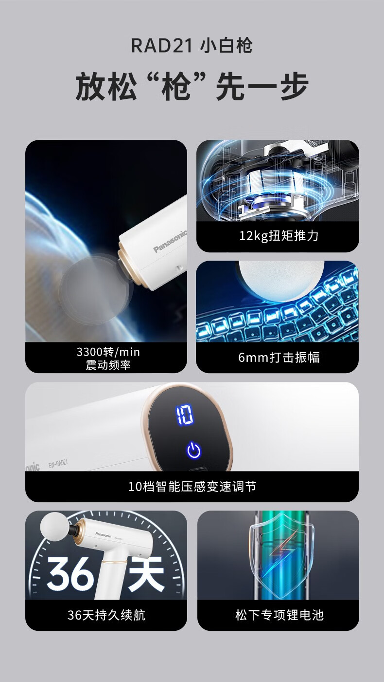 松下(Panasonic)筋膜枪EW-RAD21(筋膜枪+便携袋+4个按摩头)