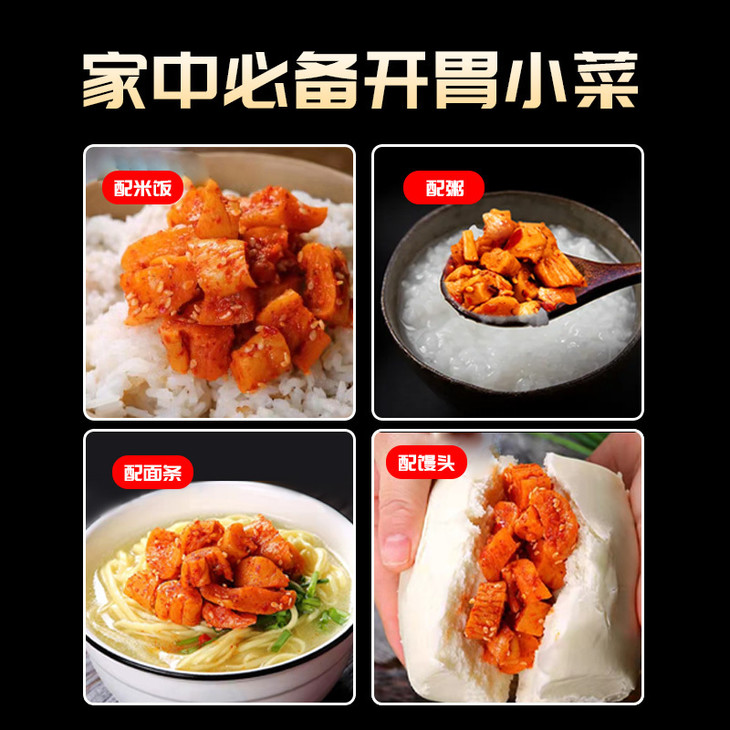 一款适合所有人的小菜 当三餐遇上萝卜干,又香又辣,就怕米饭不够吃 配面条:咸鲜适口,更香更有味😋 佐清粥:清爽不腻,更脆更有味✨ 配馒头:嘎嘣爽脆,干吃也有味✔