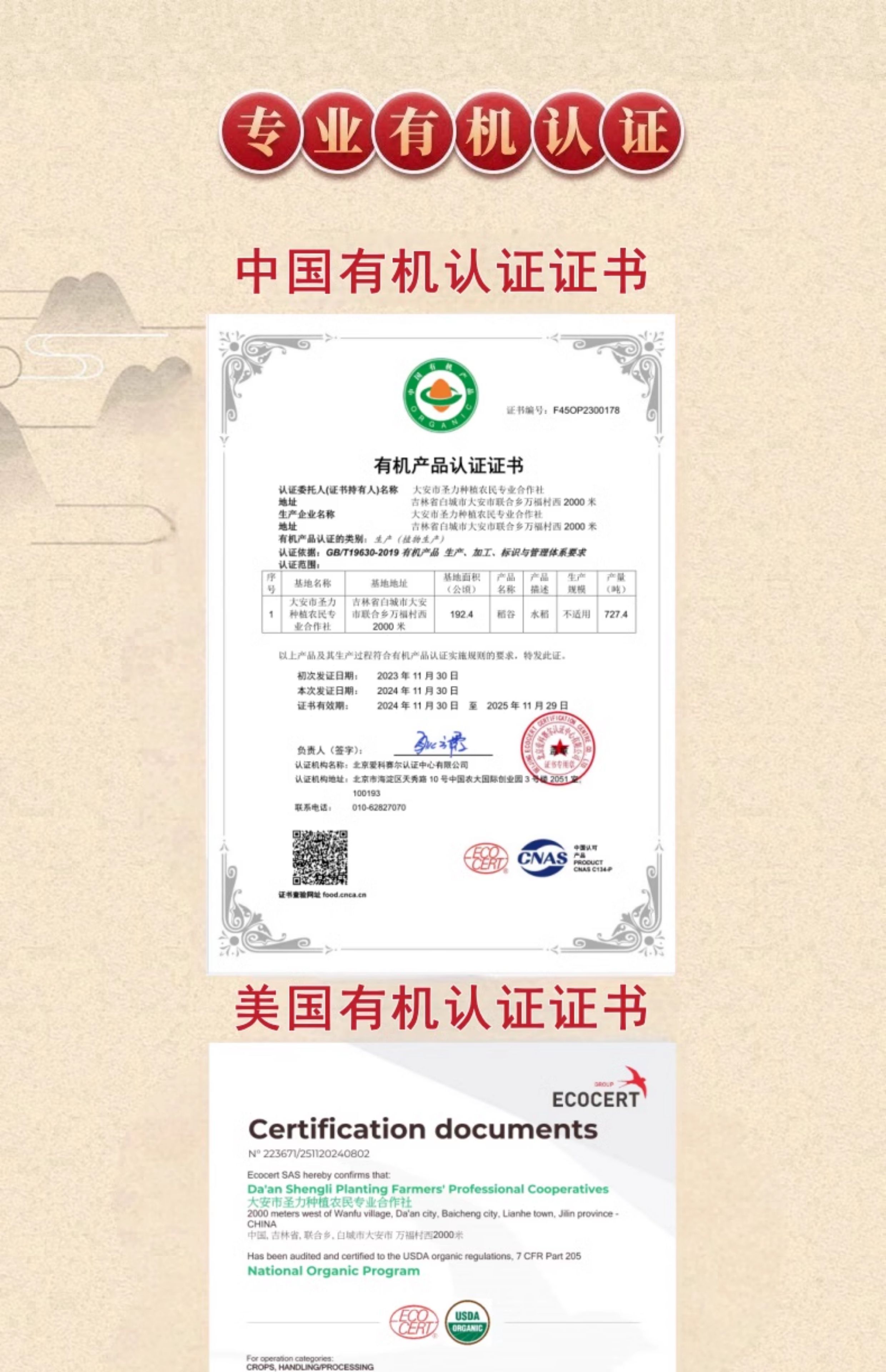 【稻泽乡】白城有机大米 欧盟认证产品鲜米 真空礼盒金装送礼