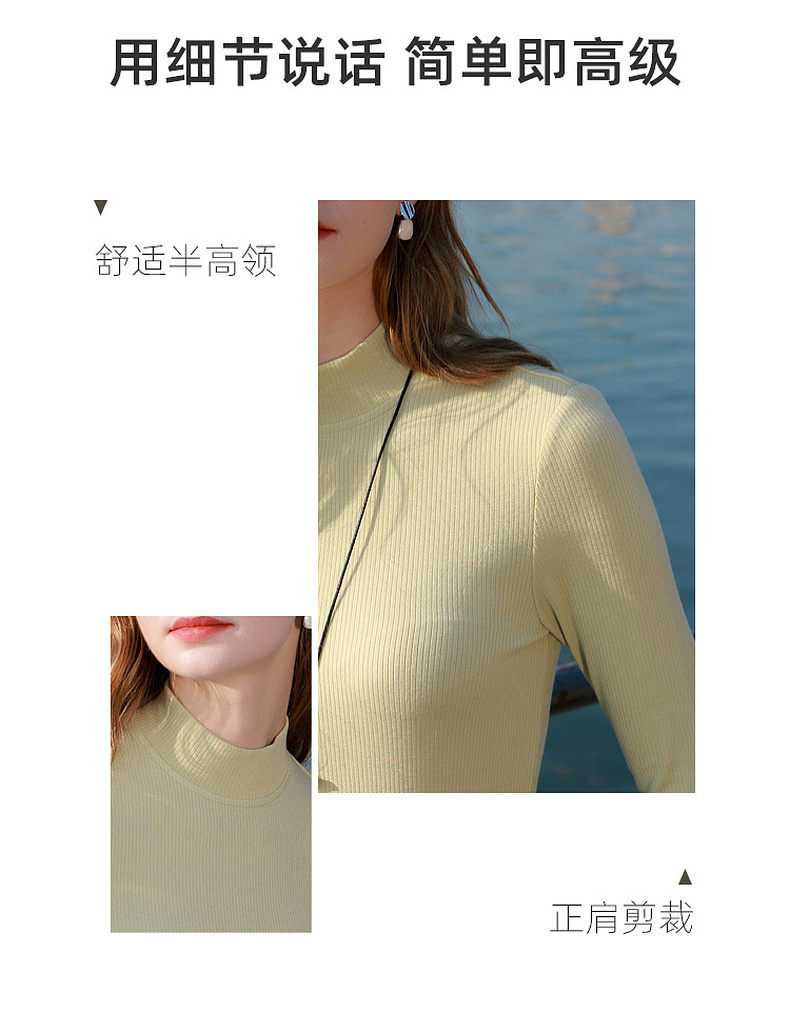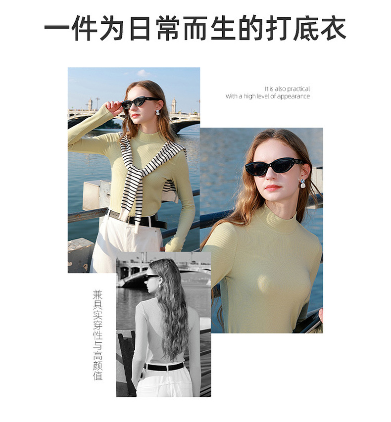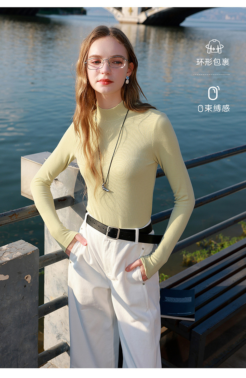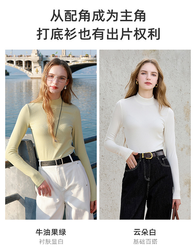 三彩2025秋季新款纯色T恤半高领上衣套头内搭修身打底M