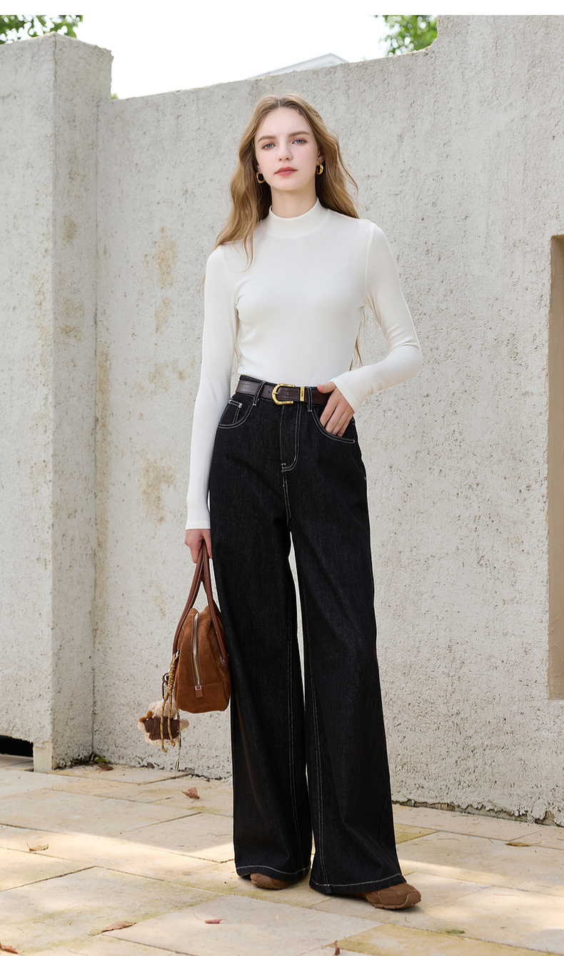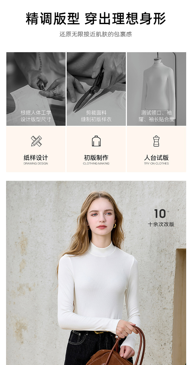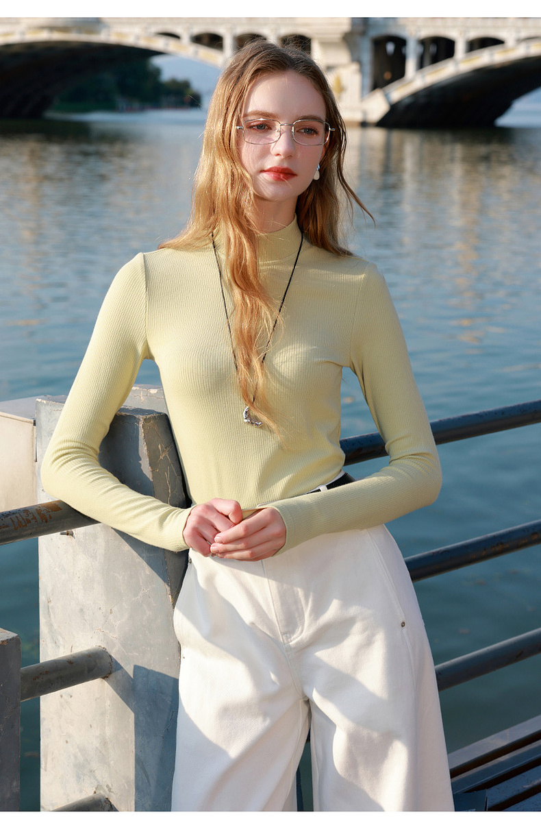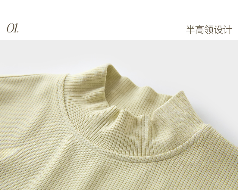 三彩2025秋季新款纯色T恤半高领上衣套头内搭修身打底M