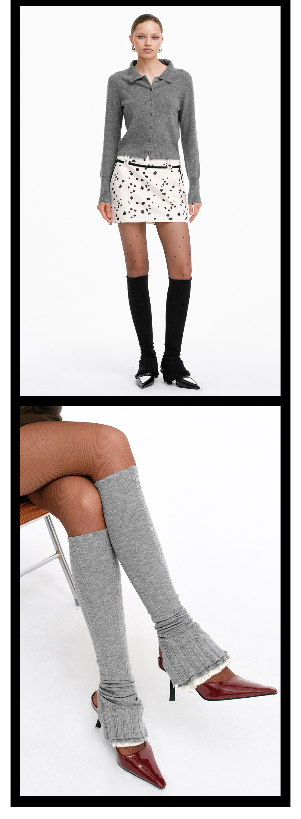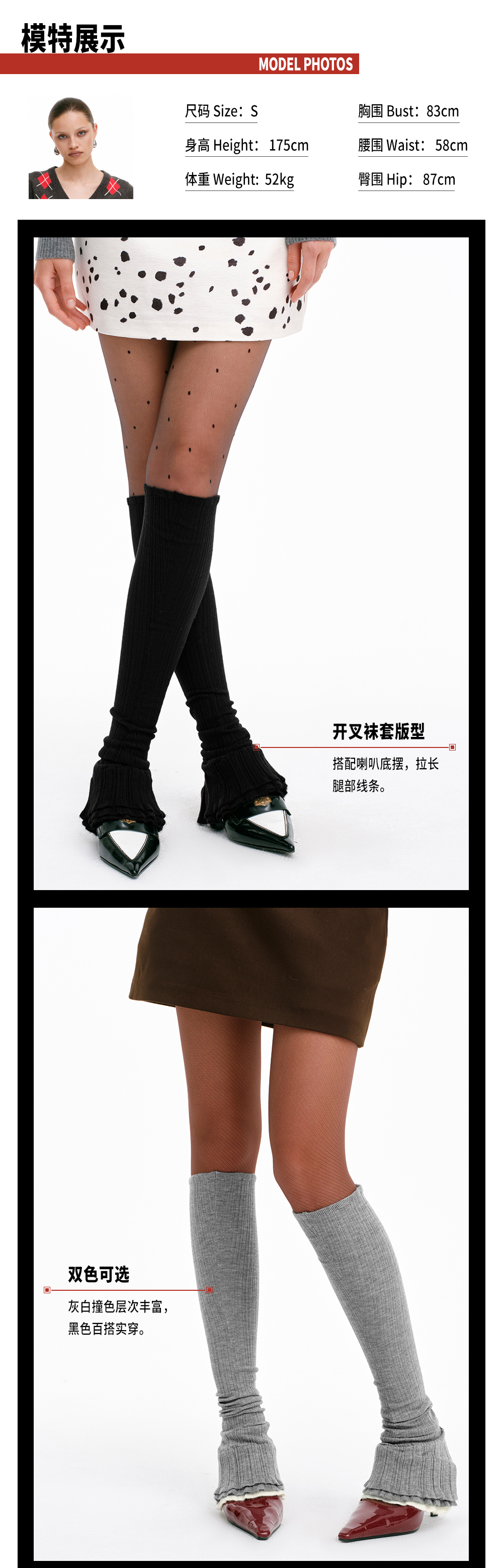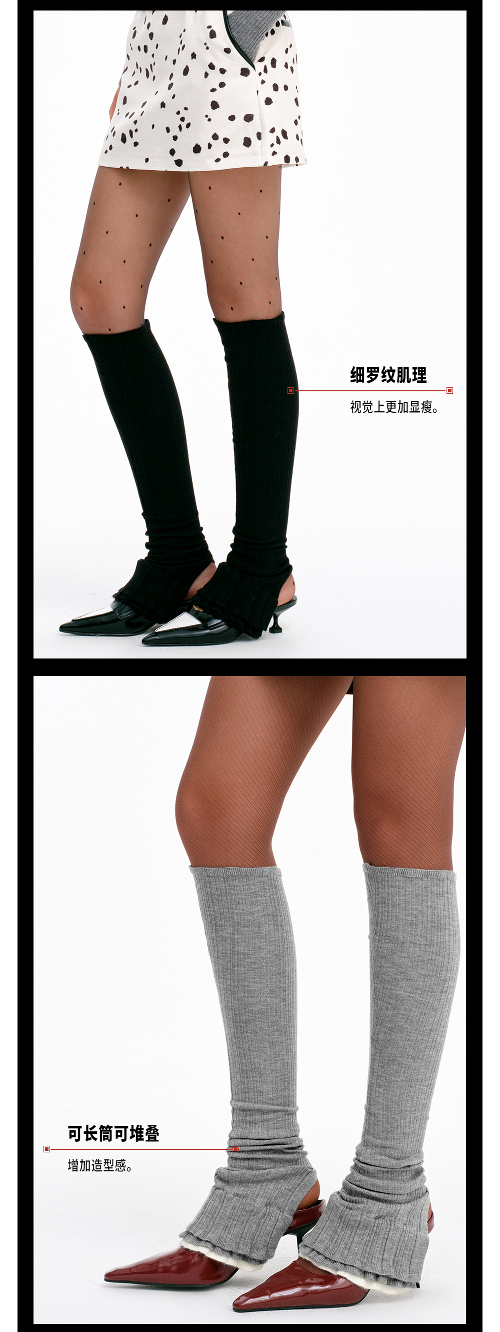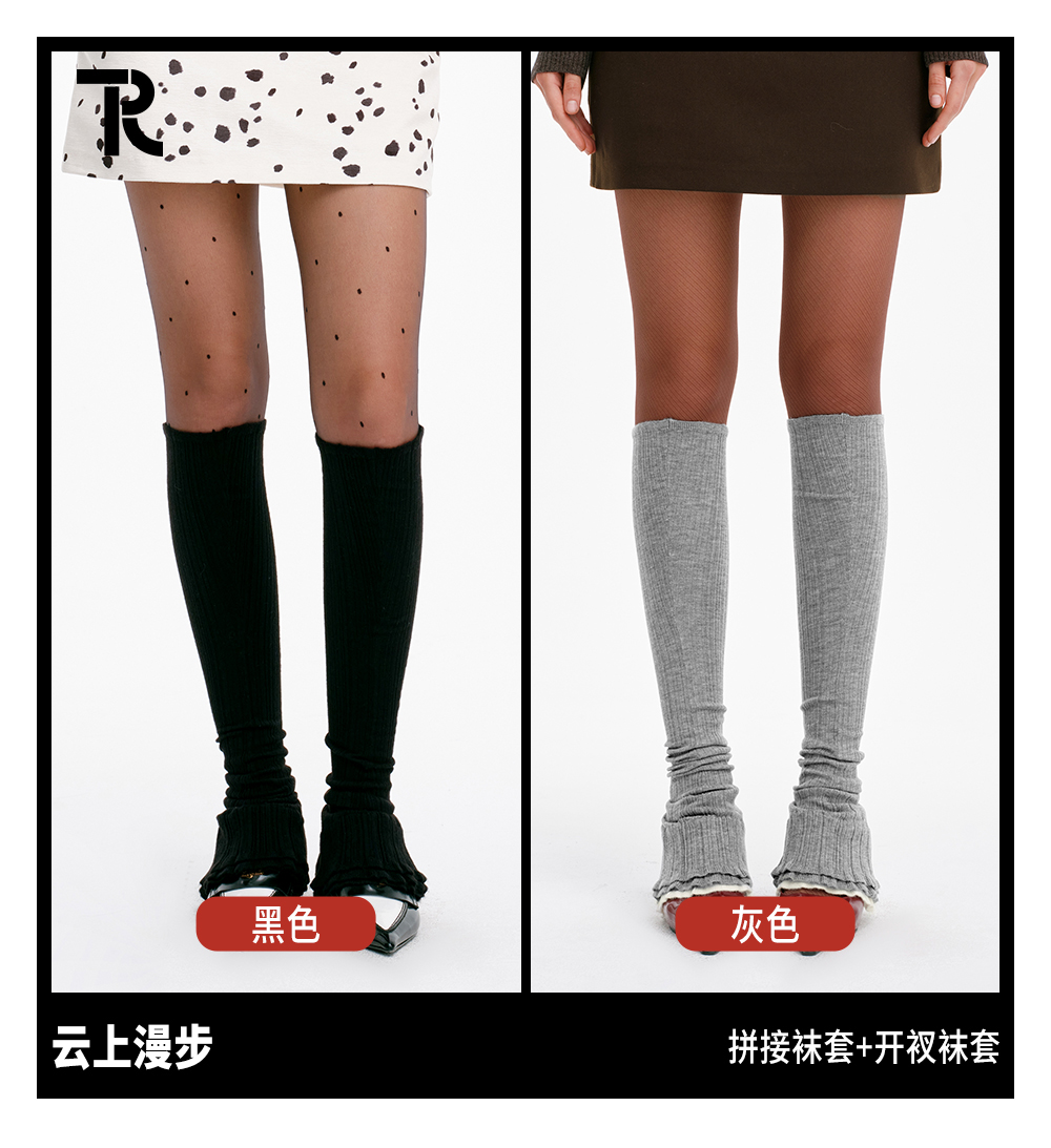 TR她热 云上漫步 灰色黑色芭蕾风针织复古显瘦喇叭袜套堆堆袜