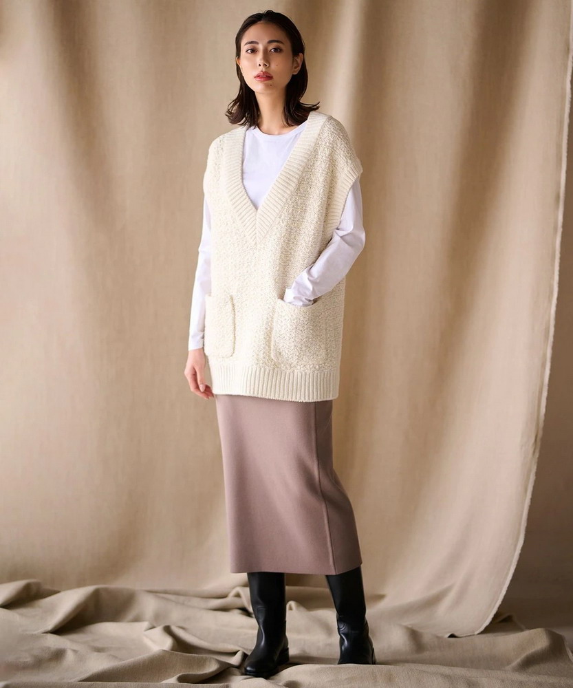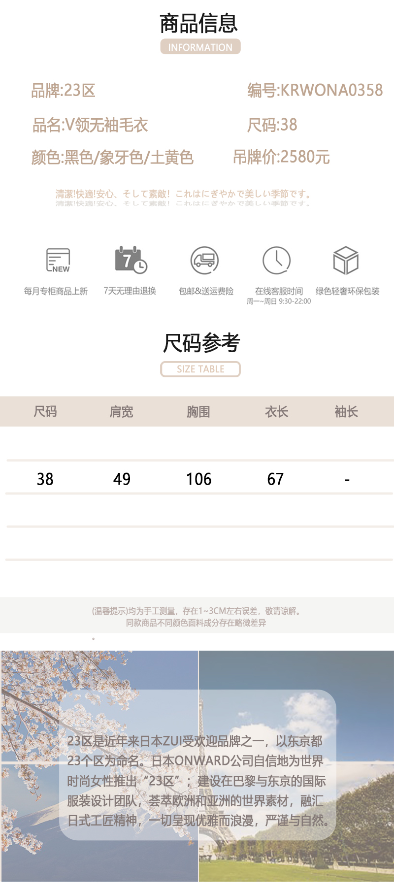 23区日系春季通勤羊毛棉混纺圆领无袖毛衣针织背心马甲商场同款