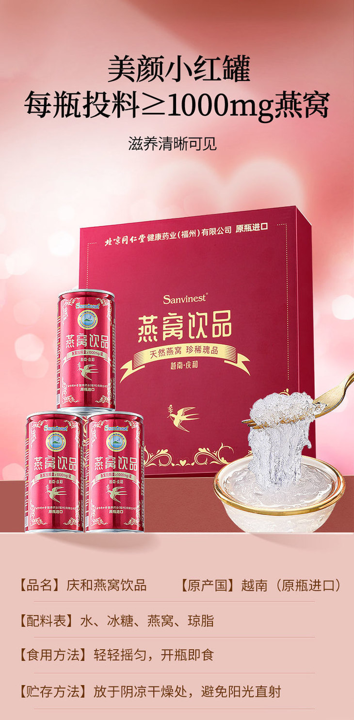 👏每瓶燕窝添加含量高达1000mg【北京同仁堂燕窝礼盒】越南庆和原瓶进口❣源自野生戈氏金丝燕,清爽低负担💦每日饮一罐,滋补养颜喝出好气色!!