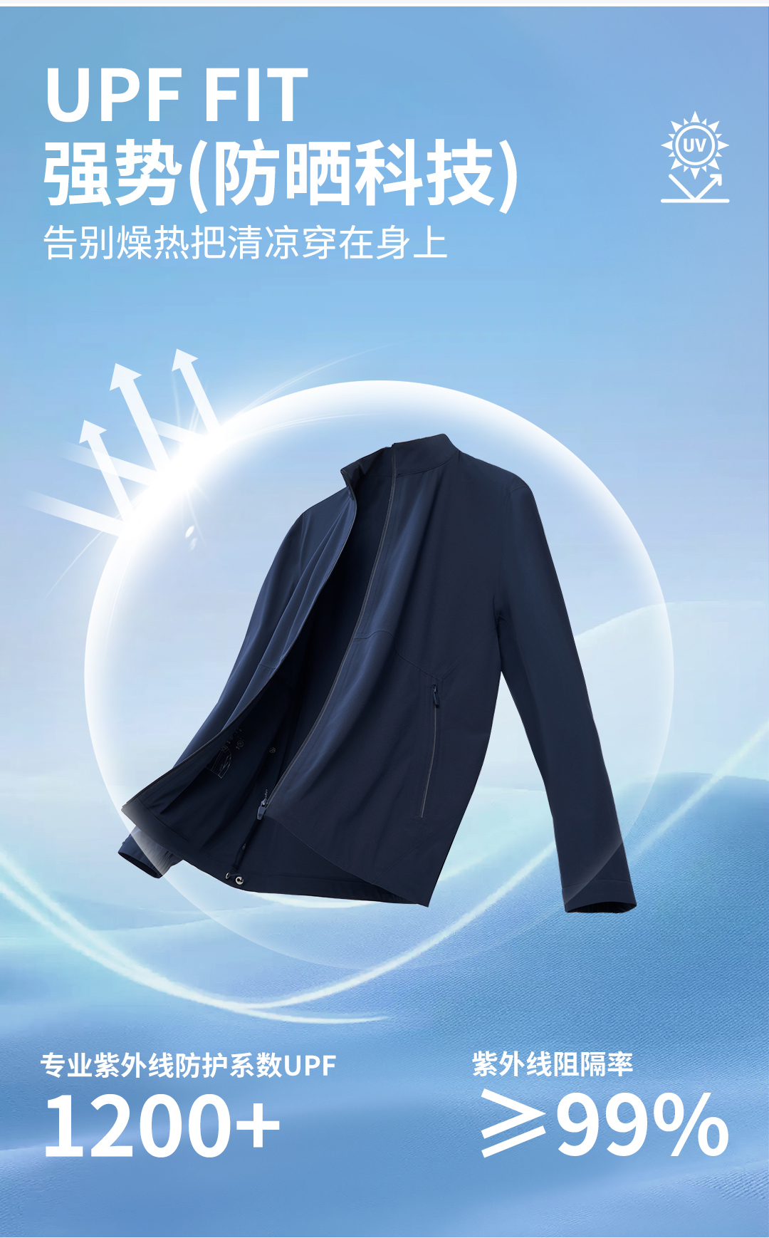 【星耀六号】专业级防晒透气四面弹立领压胶夹克251C0J523N[门店专款]