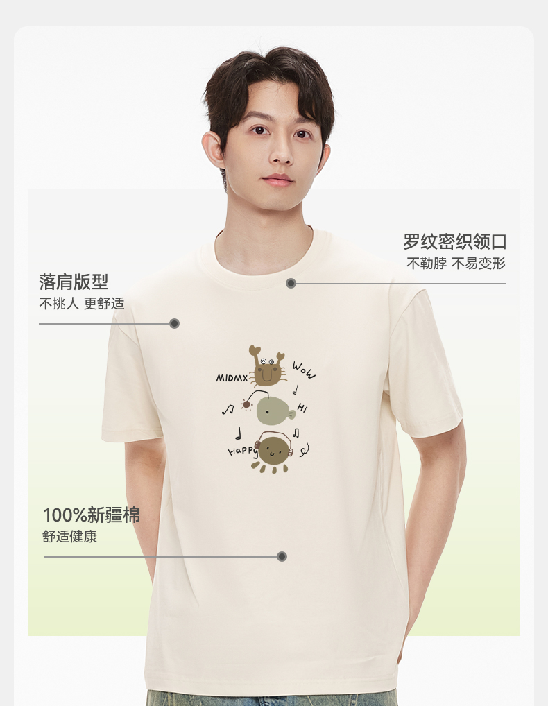 「棉的美学」百搭街头舒适纯棉T恤休闲新款~趣味印花多色系短袖